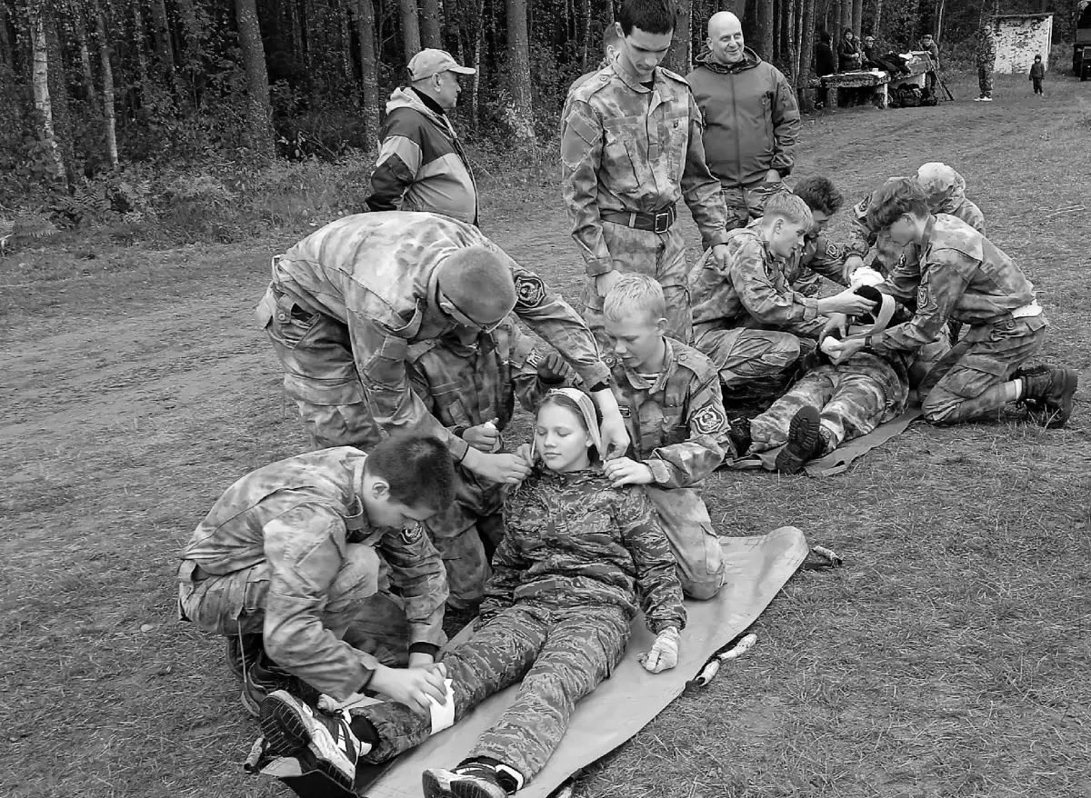 Ребята из команды «ШтурмСкаут» отлично справились с полной программой первой военной подготовки. В ходе этапов им предстояло выполнить погрузку и выгрузку личного состава в бортовой автомобиль (на снимке вверху справа), метание учебной гранаты, снаряжение магазина автомата, оказание первой медицинской помощи «раненому» (на снимке внизу справа), сборку и разборку автомата АК‑74, учебные стрельбы, работу с радиосвязью и передачу информации по рации, разминирование учебной территории и забег на 100 метров в экипировке.
