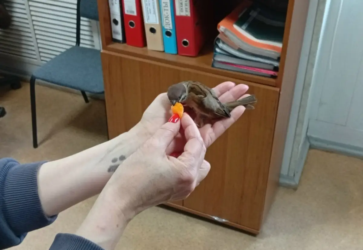А в июле прошлого года около здания редакции Анастасия подобрала крохотного воробушка, выпавшего из гнезда. Сразу же показала малыша специалистам. Вердикт вынесли печальный: «Не выживет». Но она решила бороться за его жизнь.