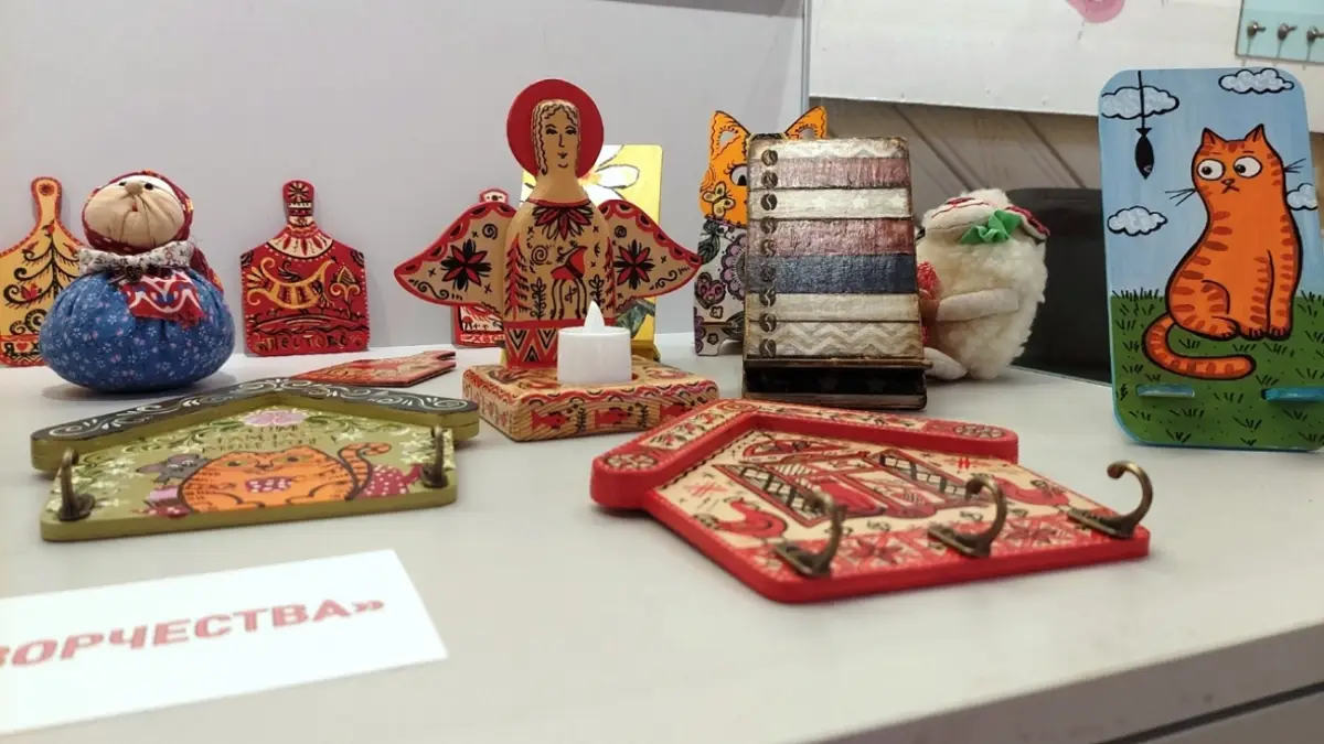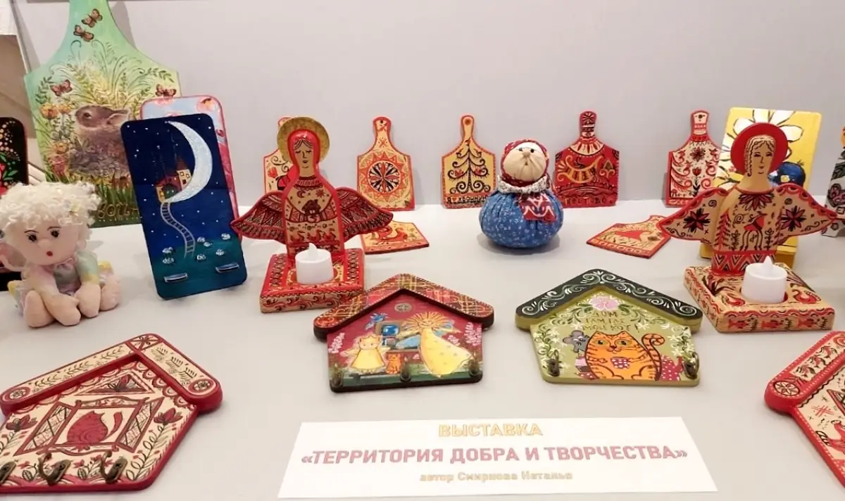 На второй выставке «Территория добра и творчества» (0+) можно полюбоваться изделиями рукодельницы Натальи Смирновой: расписными подставками под телефон, ключницами, сувенирными досочками-магнитами. Эти работы демонстрируют разнообразие техник и стилей, а также любовь к искусству и ручному труду.
