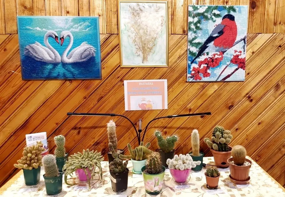 На первой «Я на пенсии сижу, время зря не провожу» (0+), приуроченной ко Дню пожилых людей, представлены результаты увлечений представителей серебряного возраста: картины, выполненные в технике «алмазная мозаика» и из природных материалов, а также коллекция самых разных, необычных кактусов.