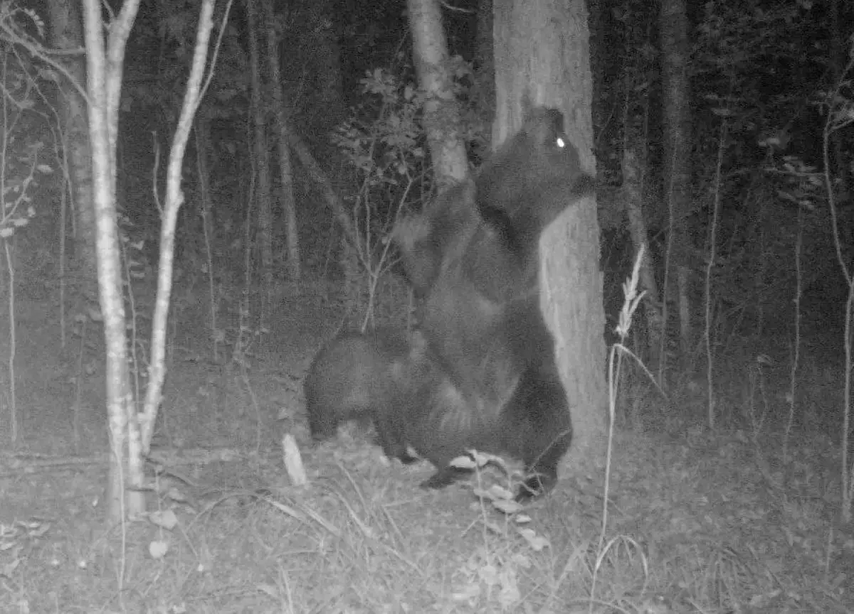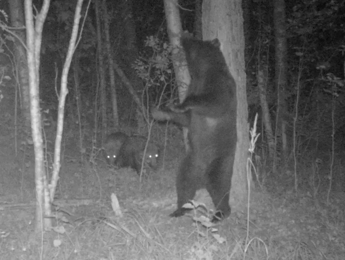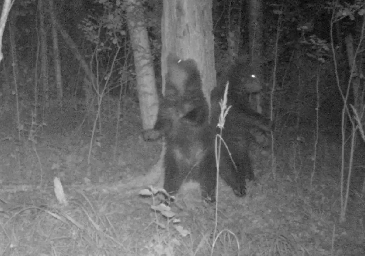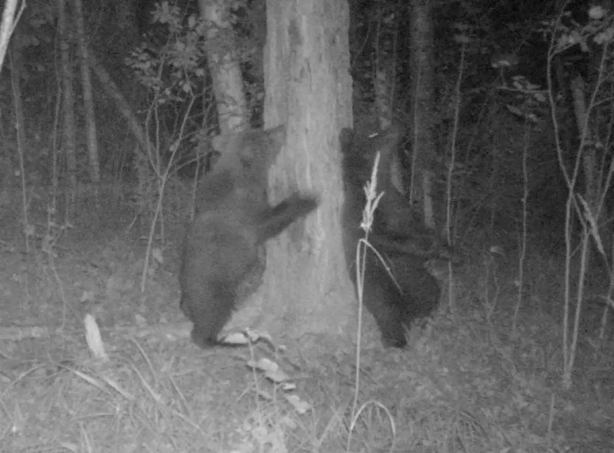 «Трутся спиной медведи»: иллюстрацию к известной песенке запечатлела фотоловушка Рдейского заповедника.