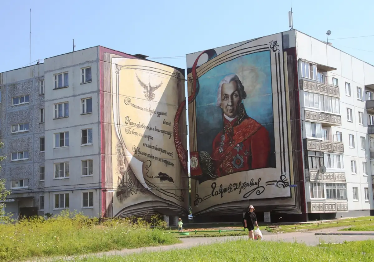 В 2024-м сразу на двух фасадах пятиэтажных домов на улице Солдатова, 9 и Грузинское шоссе, 96 создали книжный разворот, посвящённый Гавриилу Державину. На страницах книги запечатлены портрет писателя и строчки его стихотворения «Памятник».