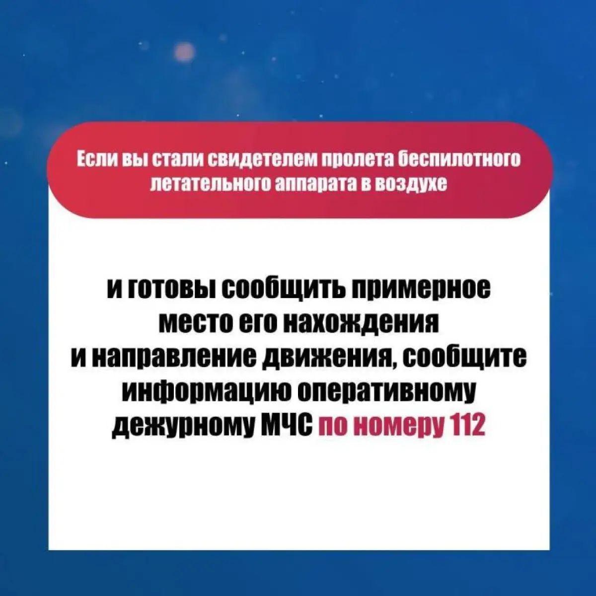 «Уважаемые новгородцы, при обнаружении БПЛА просим сохранять спокойствие и обо всех возможных ситуациях сообщать по номеру 112».