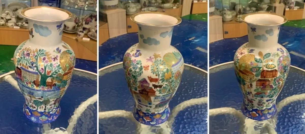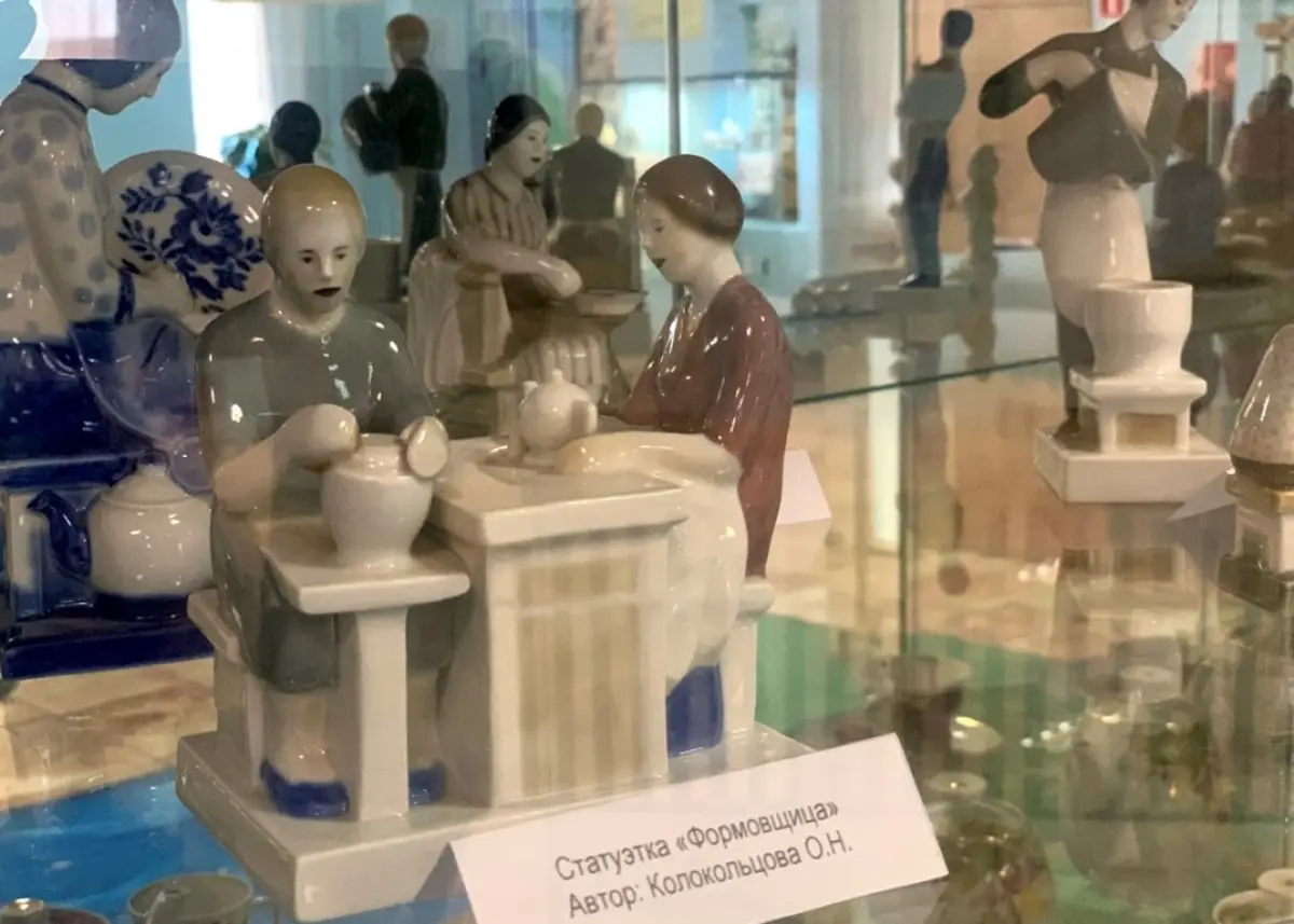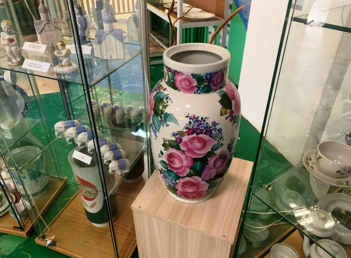 «Важно, что здесь размещены в основном живописные работы, выполненные в технике ручной росписи, – отметил Николай Васильнёв, заведующий отделом по организации досуговой деятельности и кинопоказов. – Существует и другая технология нанесения изображения на поверхность предмета с помощью переводной картинки – деколь. Конечно, живописные изделия ценились больше, поэтому они и являются основой экспозиции. Сколько мастерства требовалось художнице Валентине Долгачёвой, чтобы создать вазу под названием «Посёлок Пролетарий».