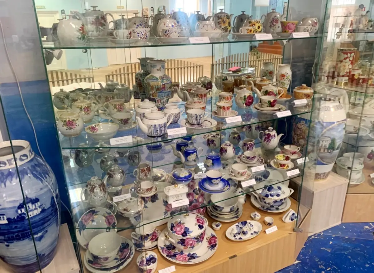 Значительная часть экспонатов – это сервизы: чайные, кофейные, столовые. Интересно не только их рассматривать, но и читать названия – поэтичные, образные: «Осеннее утро», «Лада», «Полдень», «Овальчики», «Голубые тюльпаны».