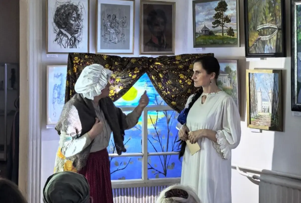 Пушкинские произведения приходят к нам в самом раннем детстве и остаются на всю жизнь. Произведения великого поэта объединяют людей всех возрастов. Это наглядно продемонстрировали на открытии выставки актёры из театра «Дом сказки», предложив зрителям отрывок из «Евгения Онегина» — 20-минутный мини-спектакль «Письмо Татьяны».