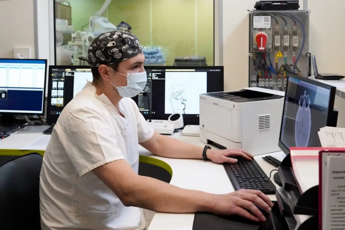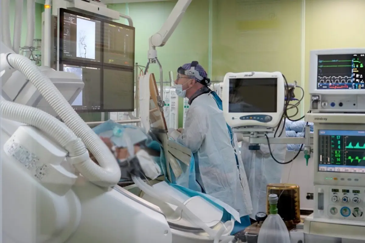 «Для этого в полость аневризмы вводятся микрокатетер и тончайшие микроспирали. Необходимо добиться идеального клубка, чтобы он полностью закрыл объем аневризмы. Операция обычно длится около двух часов», - рассказал хирург по рентгенэндоваскулярным диагностике и лечению Регионального сосудистого центра Егор Кузнецов.