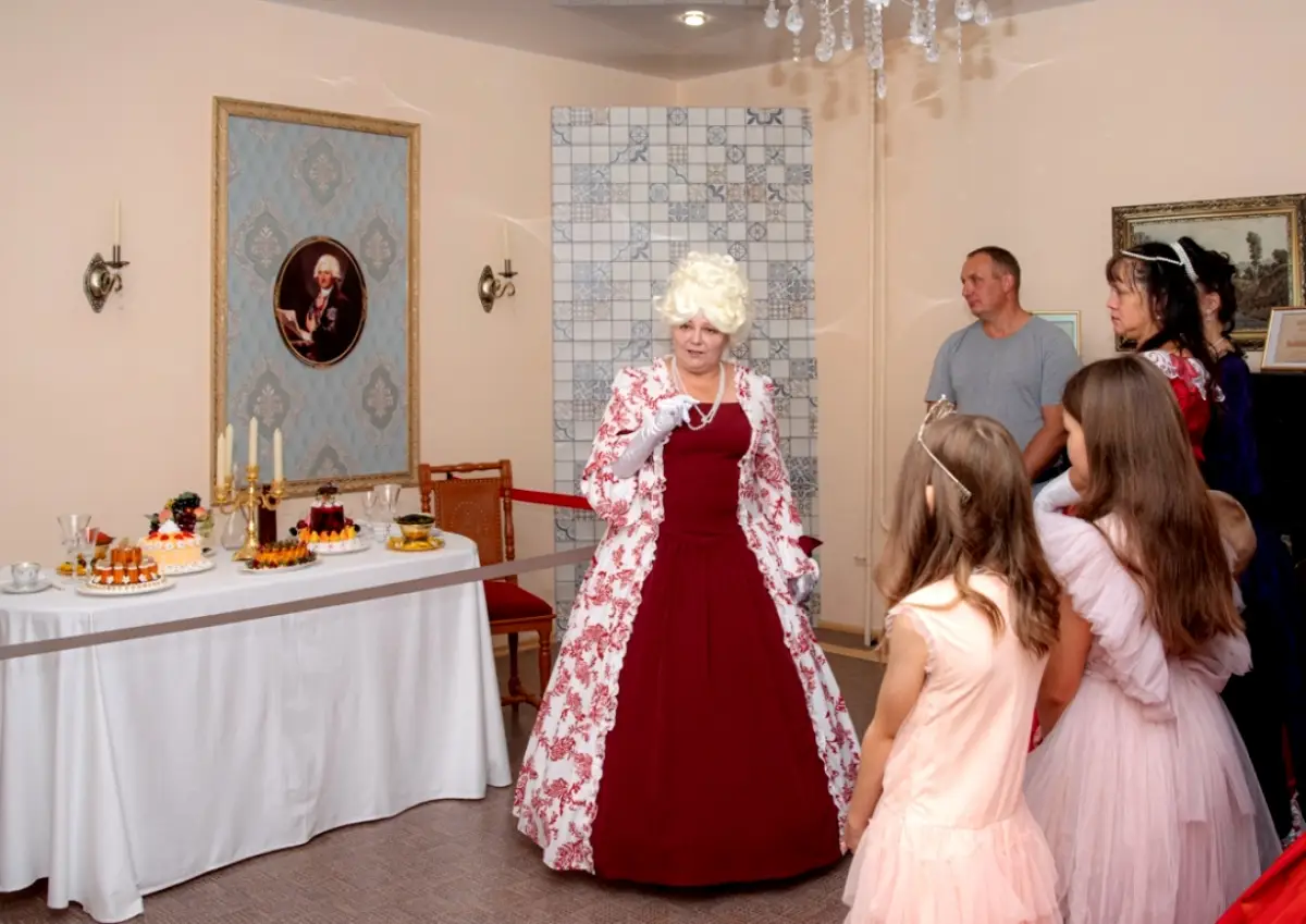 В конце сентября состоялся бал в честь торжественного открытия выставки. Принимала гостей директор музея Светлана Сорокина. Она талантливо перевоплотилась в образ Екатерины Великой. А её помощницы, методисты музея Дарья Иванова и Лидия Колягина, принарядились в сарафаны и невысокие кокошники.