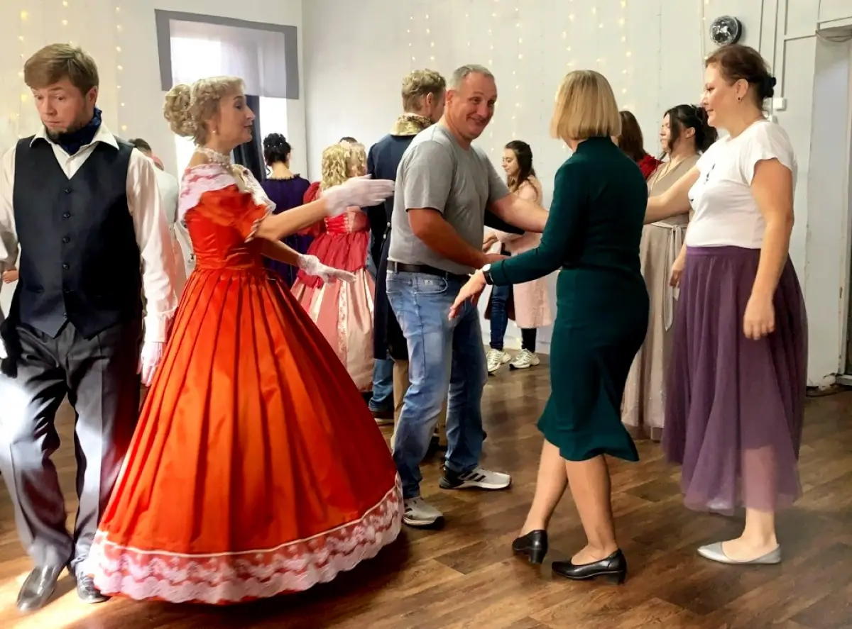 Гости бала под руководством профессионалов увлечённо исполняли полонез и «Испанский вальс», контрданс «Ревность» и марш «Рим», падеграс и марш «Мальбруг», а ещё и «Польку на троих».