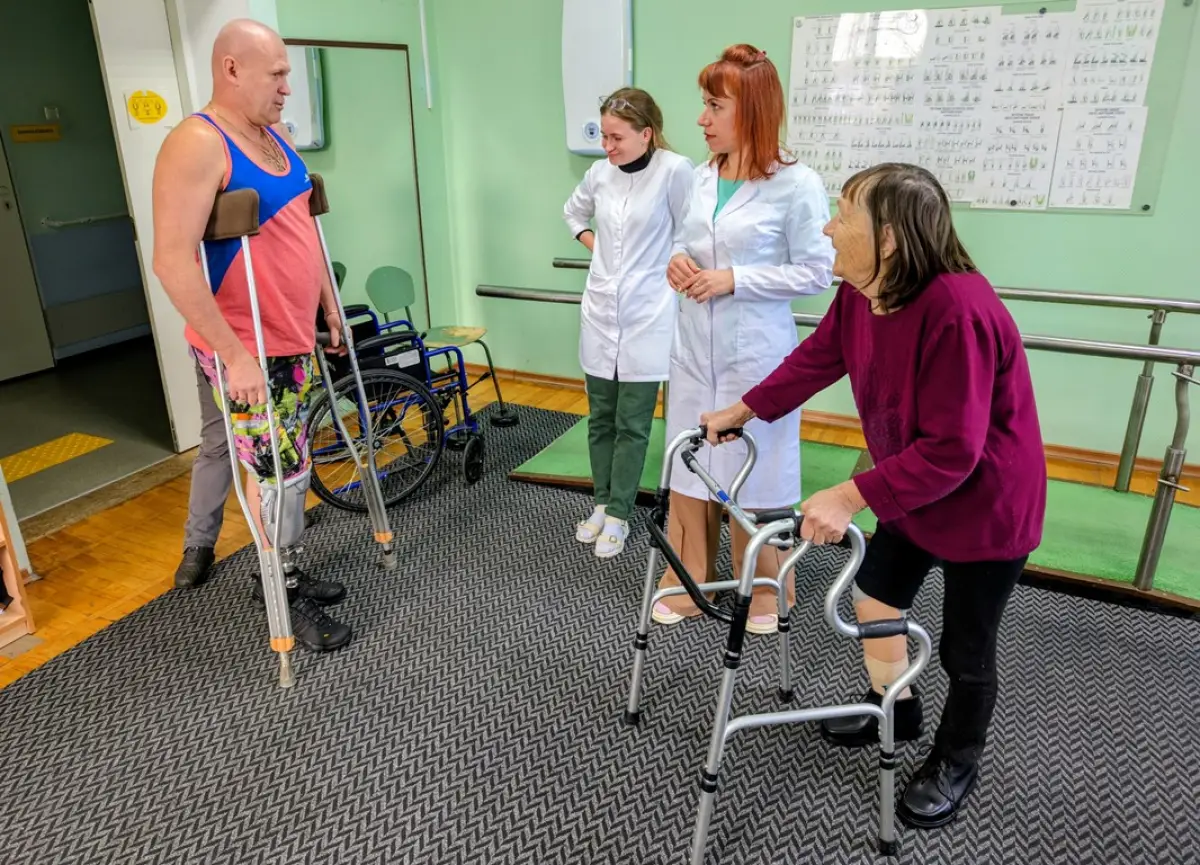 Женщина под пристальным взглядом специалистов снова встала на ноги, освоила техническое средство реабилитации и прошла «Школу ходьбы». В шутку предлагает ветеранам СВО, которые тоже здесь протезируются, бегать наперегонки.