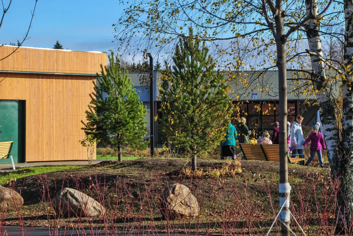 «Разноуровневое озеленение придаёт пространству уют: на территории высажены клёны, сосны, ивы, рябины и декоративные кустарники — боярышник, сирень, пузыреплодник, лапчатка, спирея, дёрен. Весной озеленение дополнит красочный цветник, а в приствольных кругах деревьев по всей территории зацветут колокольчики, напоминающие о главном символе города», - отмечается в ВК-группе Центра.