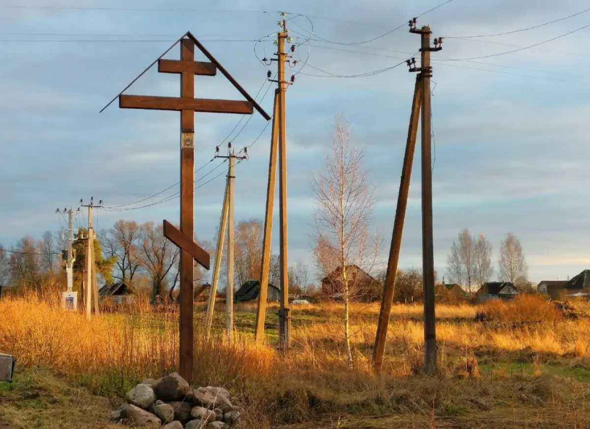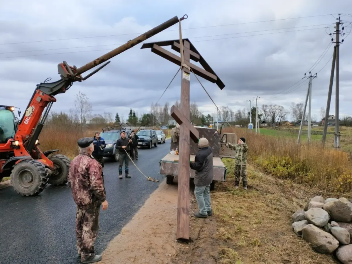 В День народного единства и праздник Казанской иконы Божией Матери жители деревни Скирино Солецкого округа осуществили свою очередную инициативу. Недалеко от центрального въезда в деревню появился новый объект – заметный издалека деревянный крест.