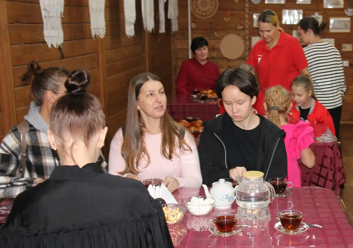 Затем гости отправились в чайную залу на чаепитие с душистыми пирогами и сдобными баранками.