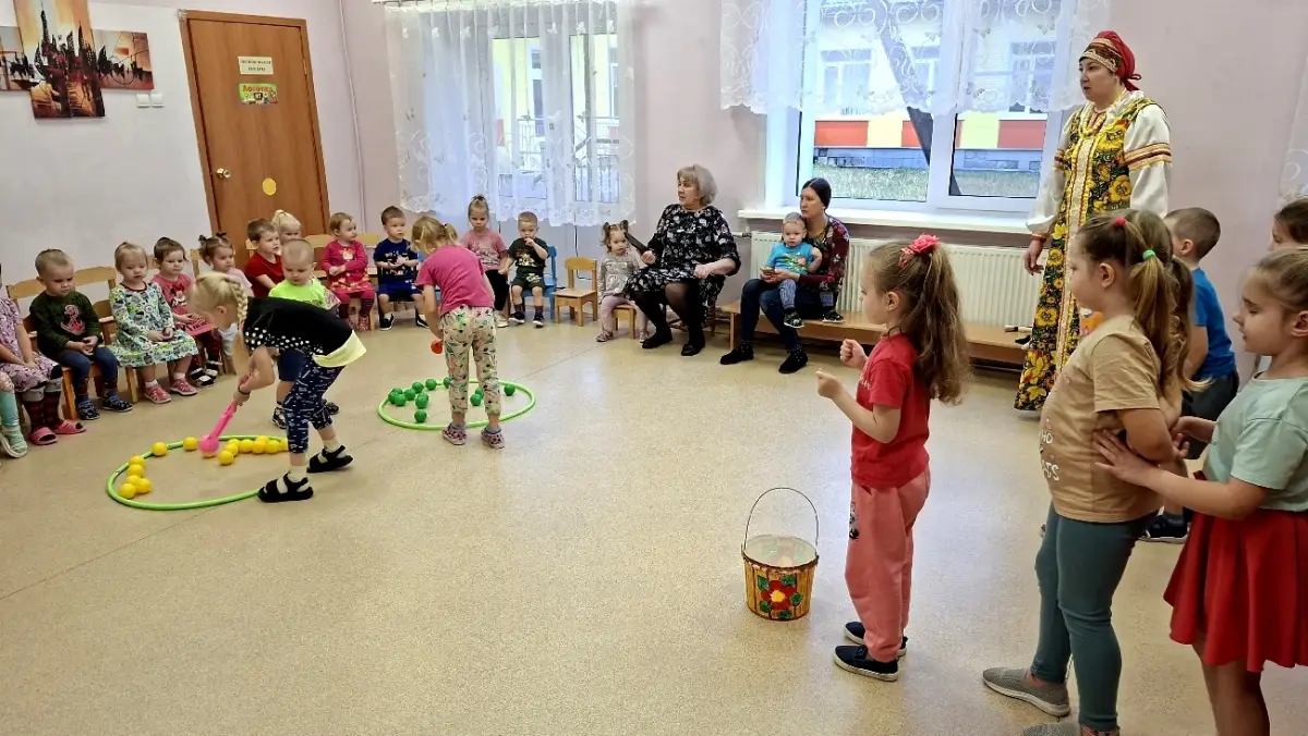 Дети водили хоровод, отгадывали загадки, играли в игры и посмотрели театрализованный кукольный спектакль «Про мастеров».