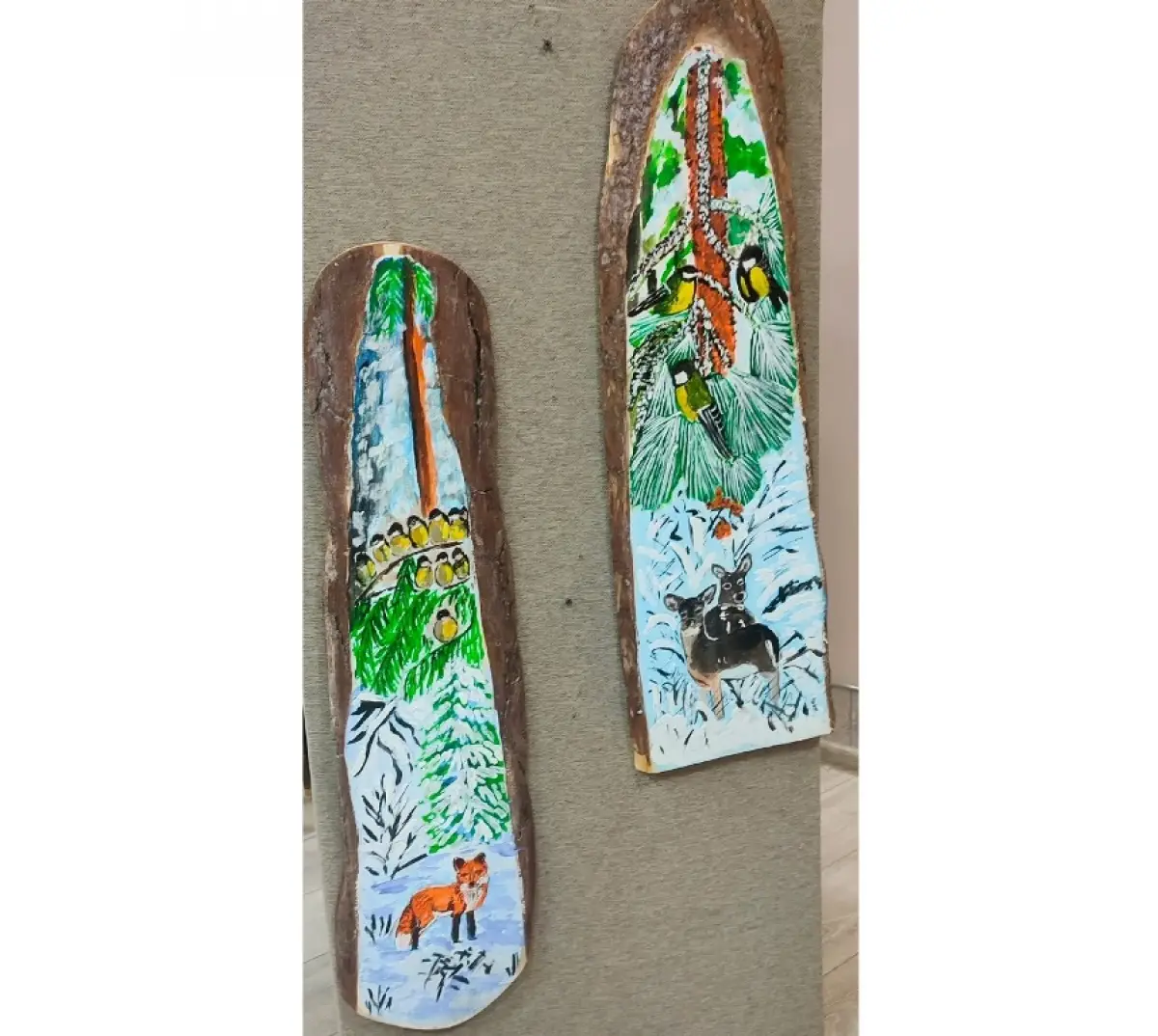 В Доме культуры села Бронница проходит выставка росписи на деревянных спилах «Дыхание природы».