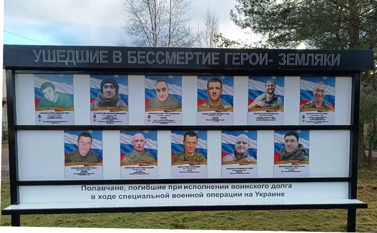 В центре посёлка Пола Парфинского округа установили Стену Памяти с фотографиями односельчан, погибших при исполнении воинского долга.