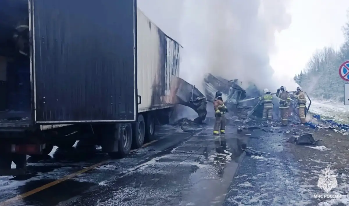 На 536-м километре водитель грузовика «Ситрак», ехавший в сторону Санкт-Петербурга, по неустановленной причине выехал на полосу встречного движения. Там его большегруз столкнулся с грузовым автомобилем «МАН».