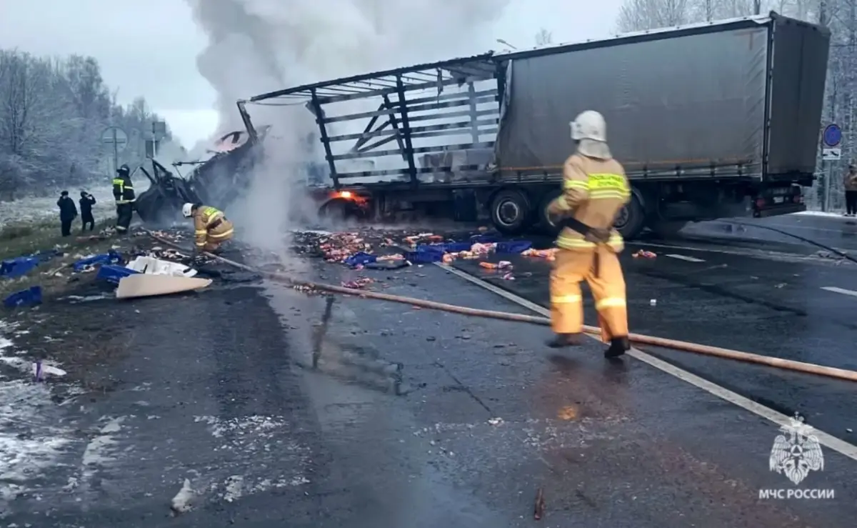 Сегодня в 15:30 рядом с деревней Тютицы Новгородского округа на трассе М-10 «Россия» произошла авария с участием грузовиков.