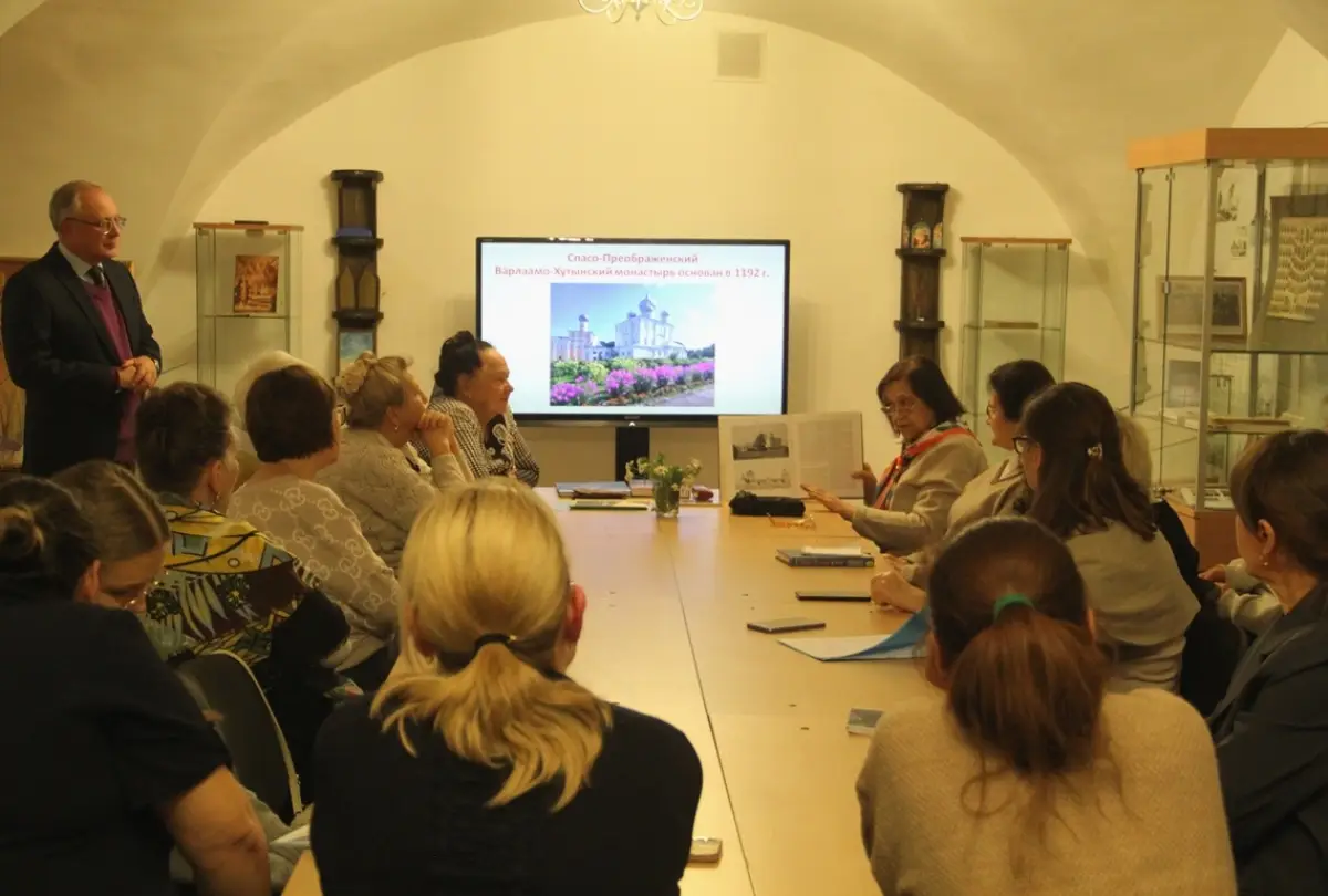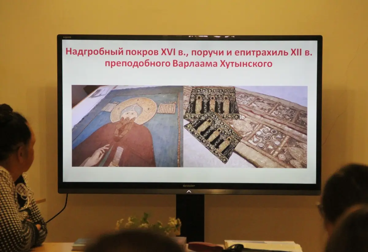 На встрече вспоминали житие святого Варлаама Хутынского, дошедшие до наших дней артефакты, связанные с ним. Это вкладная грамота (древнейший документ на пергаменте), в которой преподобный передал монастырю пахотную землю, сенокосы и другие угодья; поручи и епитрахиль святого.