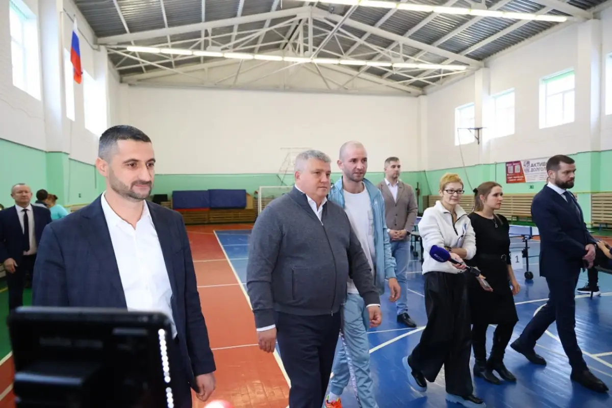 Экскурсию для губернатора провёл учитель физкультуры средней школы посёлка Андрей Семенов – победитель региональных конкурсов «Учитель года-2024» и «Тренер нашего двора-2025».