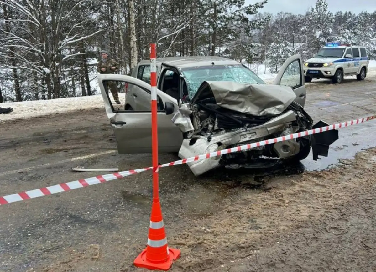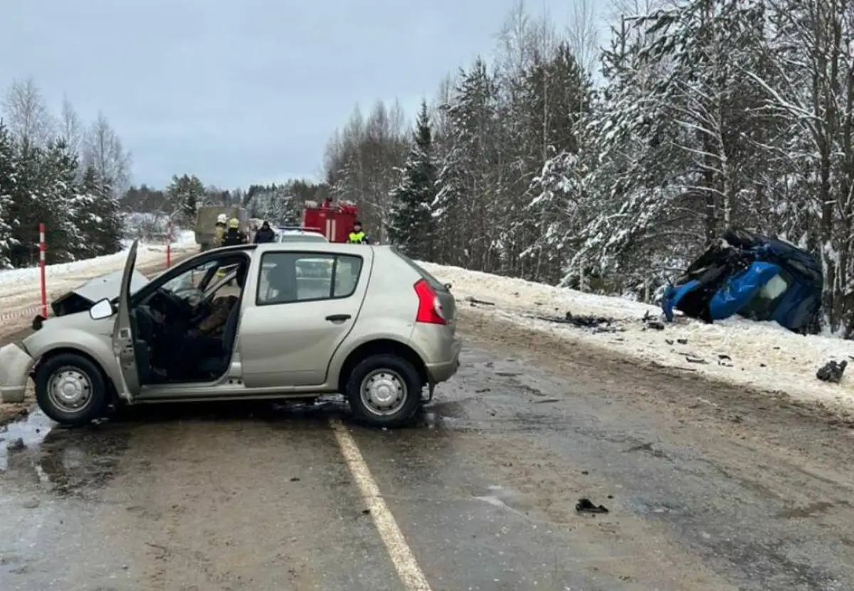 Сегодня в 10:15 в Пестовском округе произошло лобовое столкновение двух легковых автомобилей «Киа Рио» и «Рено Сандеро».