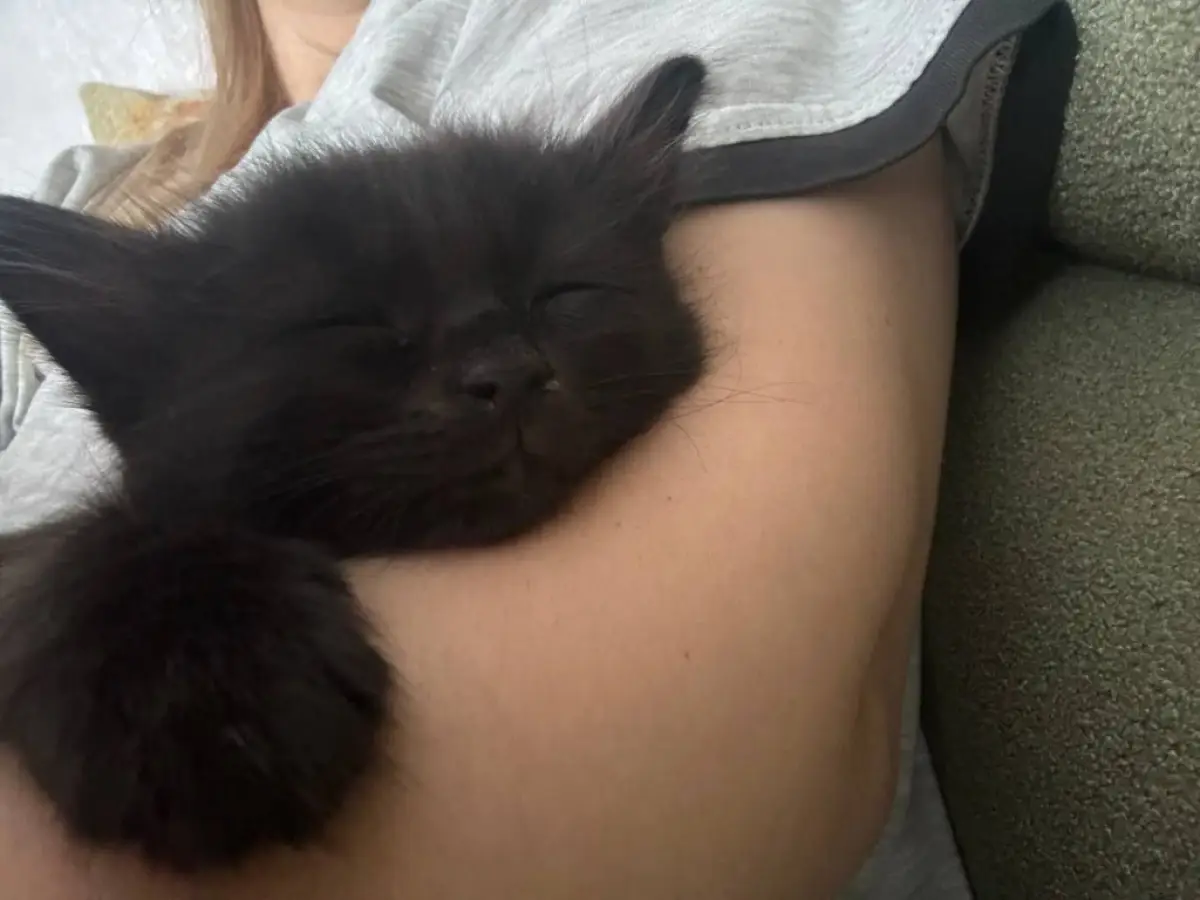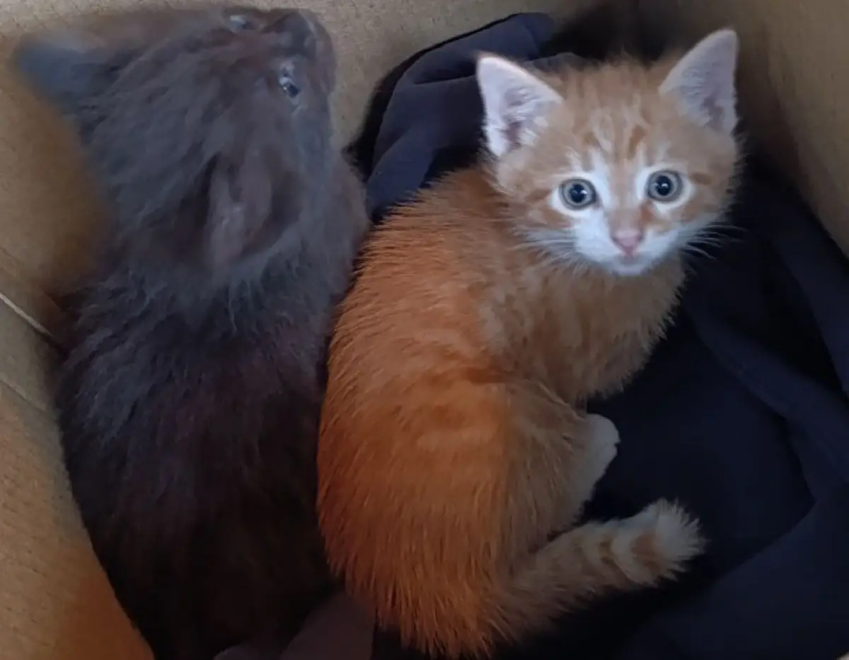 Затем гостья снова попросилась на улицу. Как оказалось лишь для того, чтобы притащить двух недавно рождённых котят: черненького и персикового. Сотрудники внимательно осмотрели территорию вокруг здания. Нет ли ещё котят? А после накормили, отогрели и решили приютить пушистую троицу, посчитав визит знаковым.