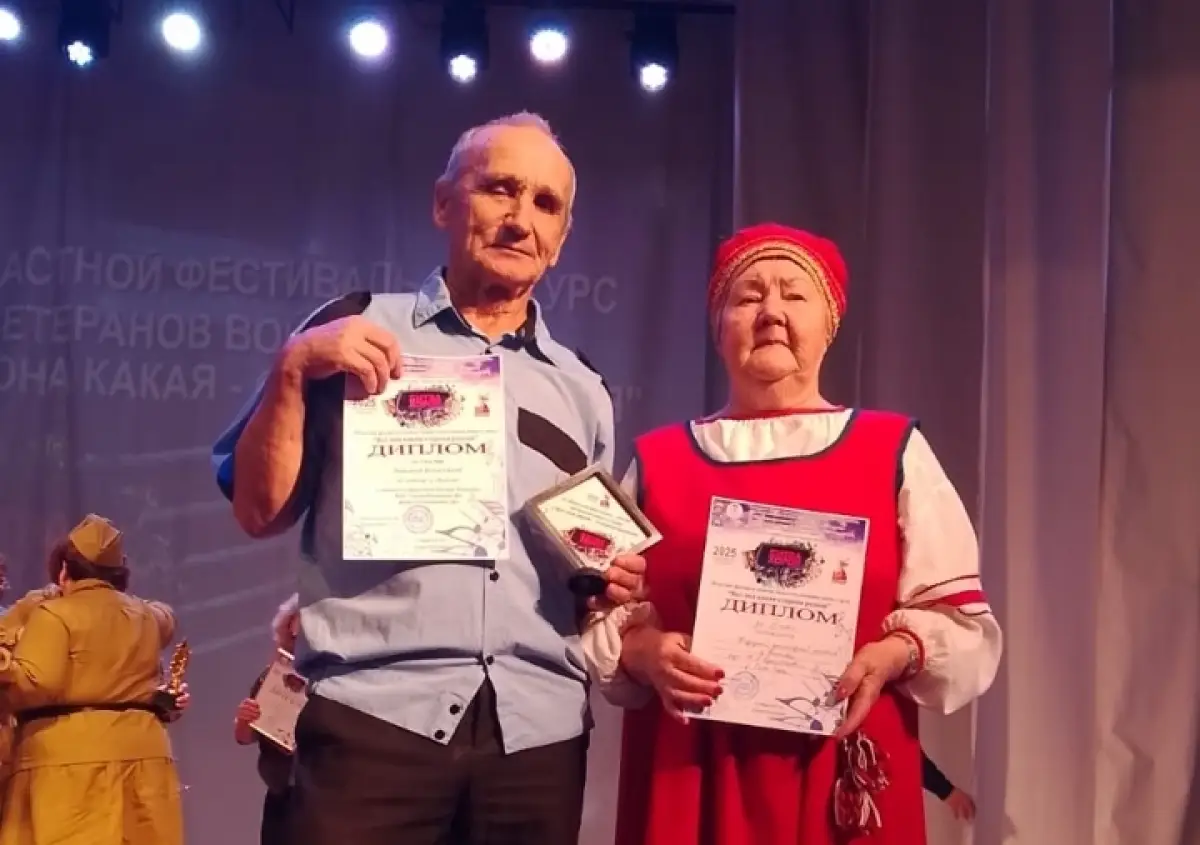 Юрий Васильевич Затевин и Валентина Николаевна Сенина с дипломами. 8 ноября 2025 года, посёлок Пролетарий, «Битва хоров».