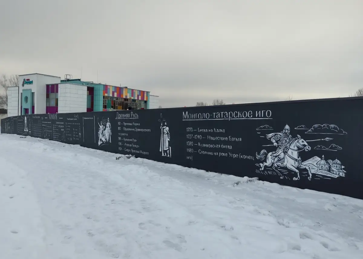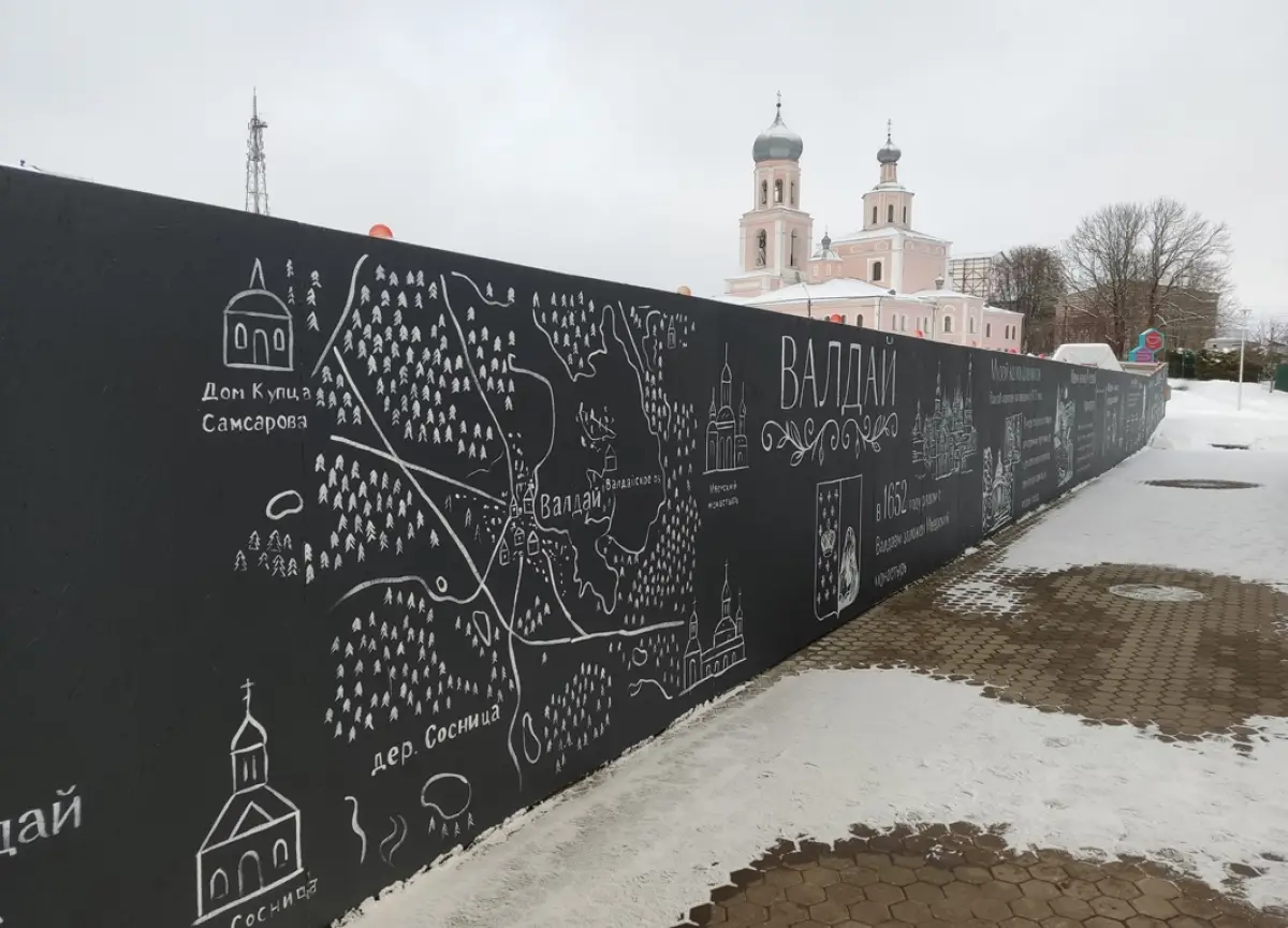 Забор вокруг бывшего дома купца Якунина в самом сердце Валдая опровергает устоявшиеся представления об ограждениях вокруг стройки. Собственник установил вокруг объекта реставрации забор, по которому школьники смогут изучать историю родного края и ещё и целый ряд общеобразовательных предметов.