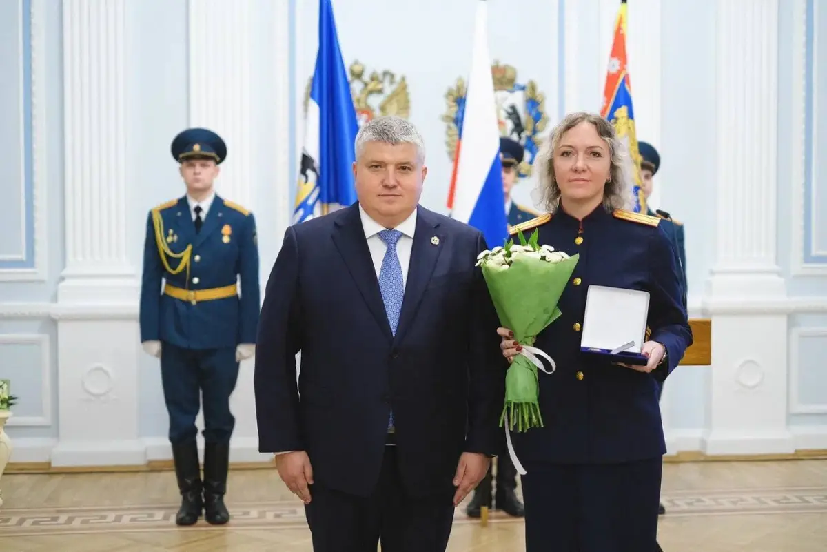 Кроме того, Александр Дронов вручил награды архивистам Борису Зорину и Екатерине Михайловой, сотрудникам Следственного комитета по региону Светлане Артамоновой и Лилии Бондаревой. Они подготовили историко-документальную выставку «Приговор нацизму. Оккупация и геноцид в годы Великой Отечественной войны 1941-1945 годов на территории современной Новгородской области».