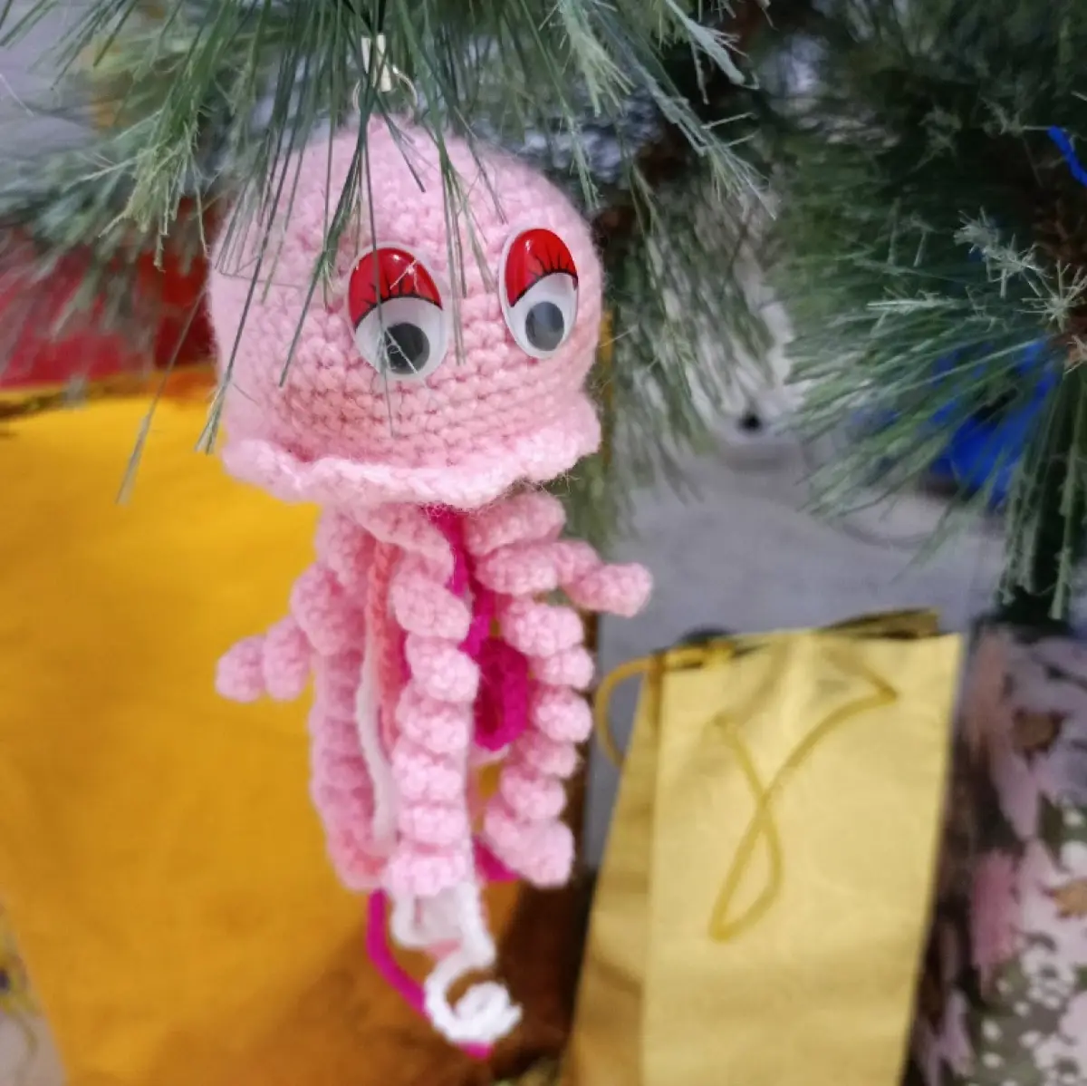 На этом мастерица не остановилась — она и ёлочку украсила своими вязаными игрушками.