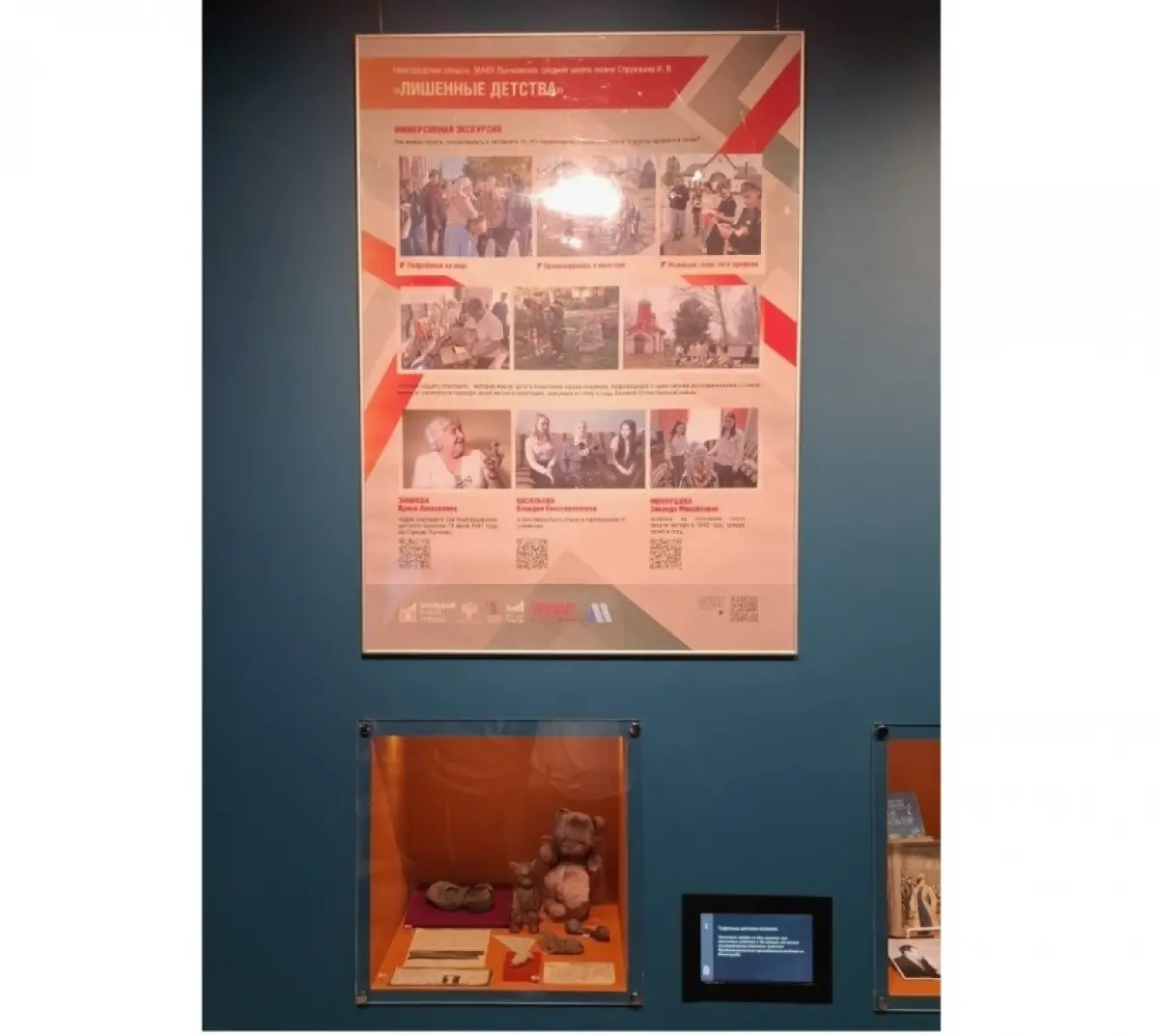 Ученики Лычковской школы Ольга Карацупа и Егор Дмитриев под руководством наставника-педагога Светланы Давыдовой представили на выставке экспозицию «Лишённые детства».