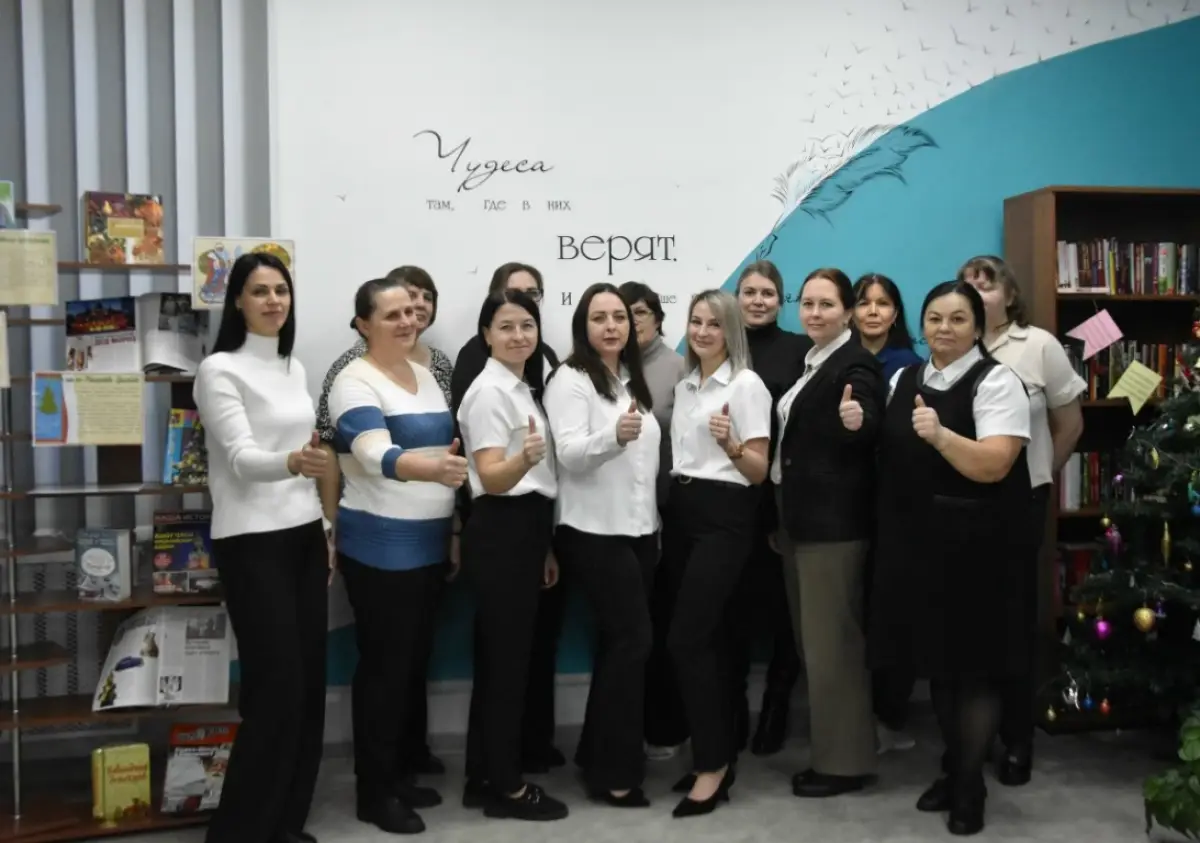 Молодой, сплочённый и трудолюбивый (что подтвердил ремонт) коллектив районной библиотеки.