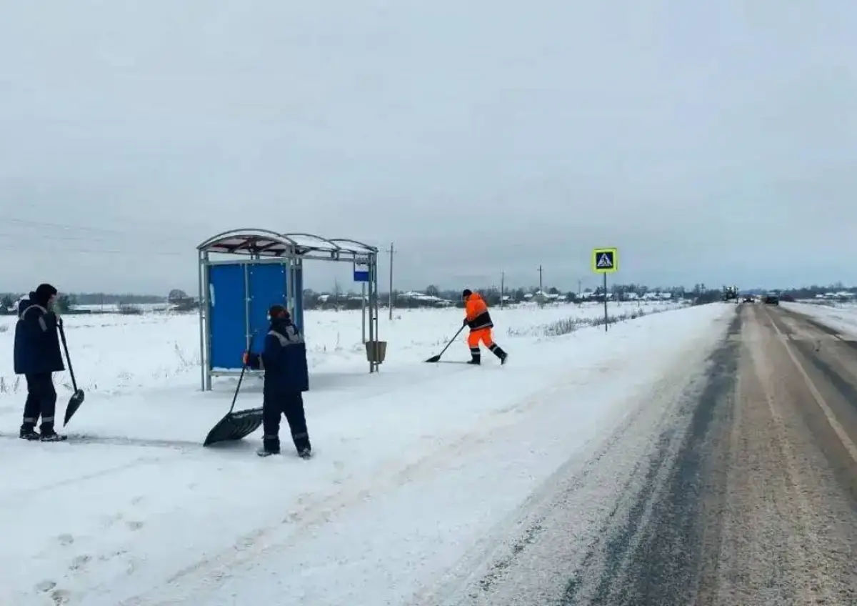 Так, сегодня в Новгородском округе от снега очистили остановочные площадки на автомобильных дорогах «Москва - Санкт-Петербург», Бронница - Мшага и Савино - Селищи.