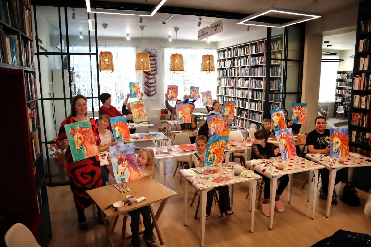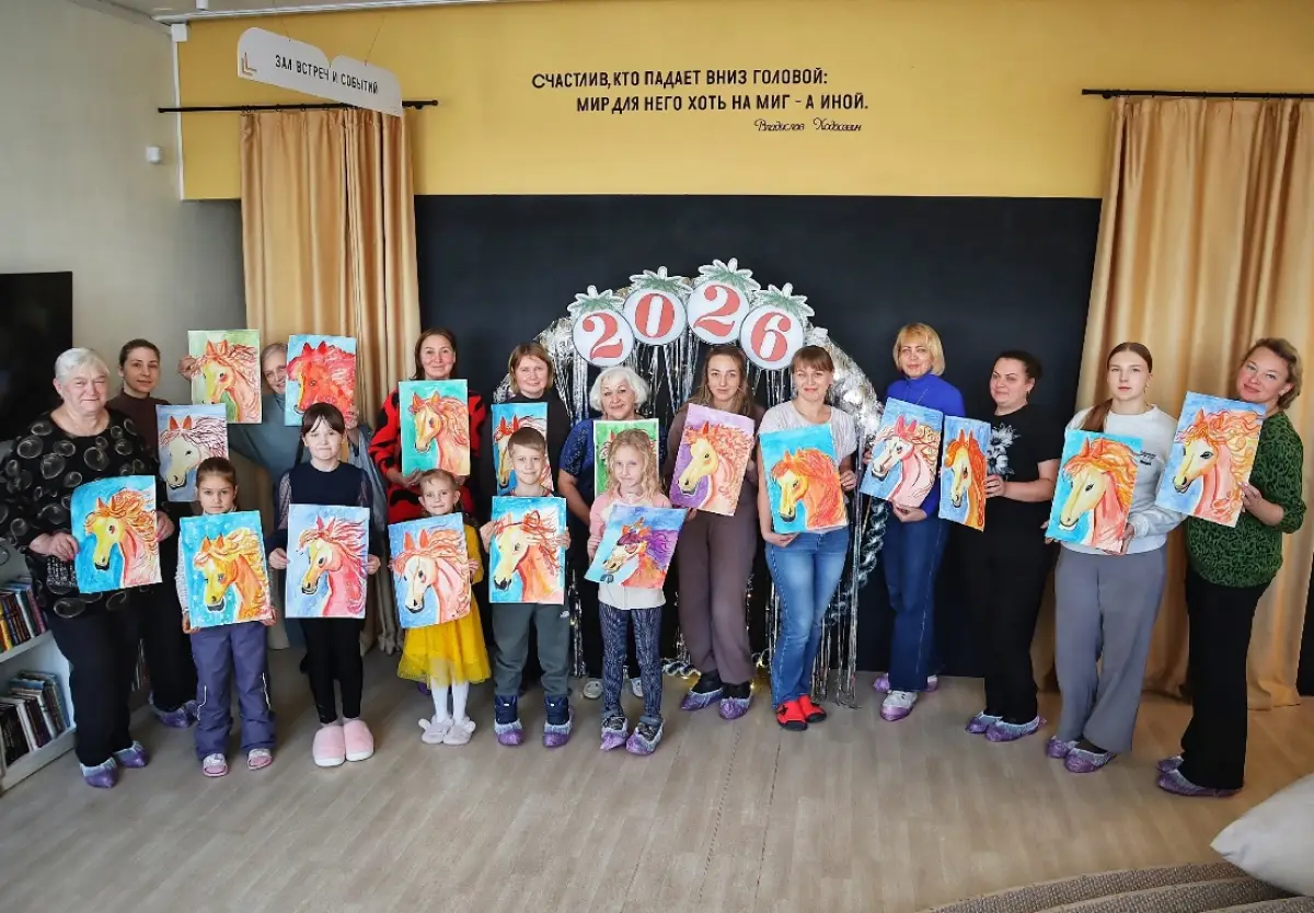 В Любытинской районной библиотеке прошёл творческий мастер-класс – его участники нарисовали красную огненную лошадь, символ 2026 года.