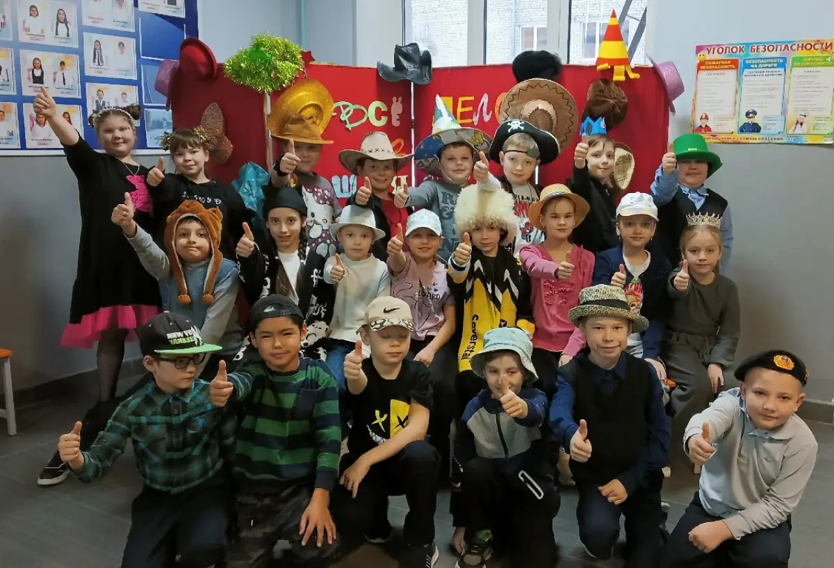 Всё началось с грандиозной акции «Школа в шляпах». Представьте себе: коридоры и классы заполнили самые разнообразные головные уборы — от элегантных цилиндров и беретов до дерзких ковбойских шляп, уютных ушанок, ярких панам и, конечно, самых невероятных авторских творений!