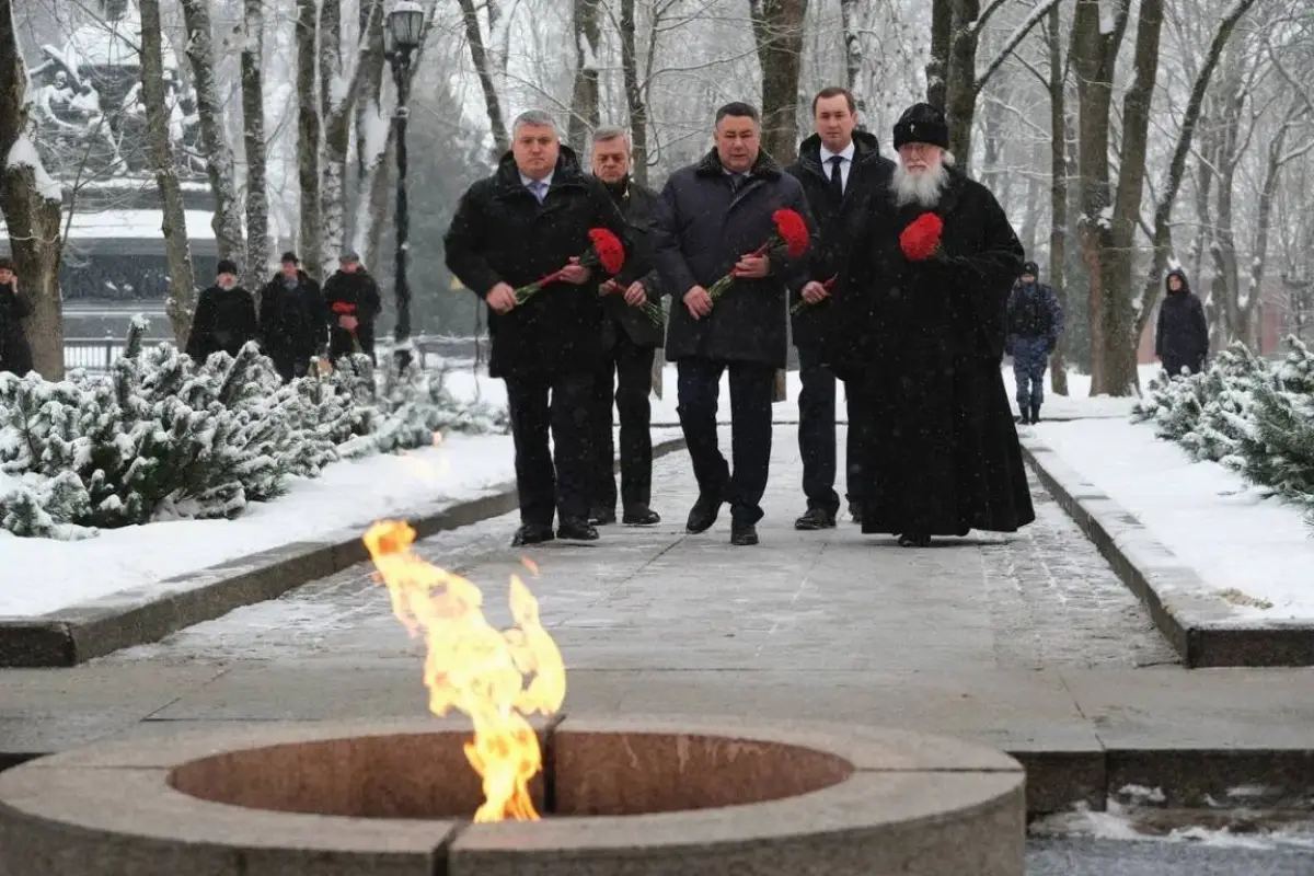 Вместе с губернатором Новгородской области Александром Дроновым он почтил память освободителей города и возложил цветы к мемориалу «Вечный огонь славы».