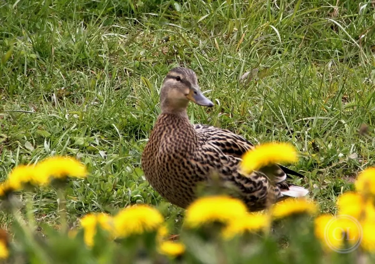 А это позитивная летняя уточка в ярких одуванчиках, фото Ольги Лавровой