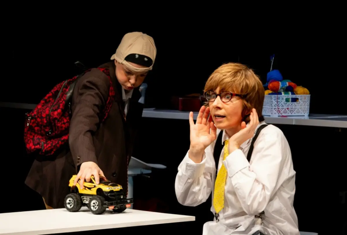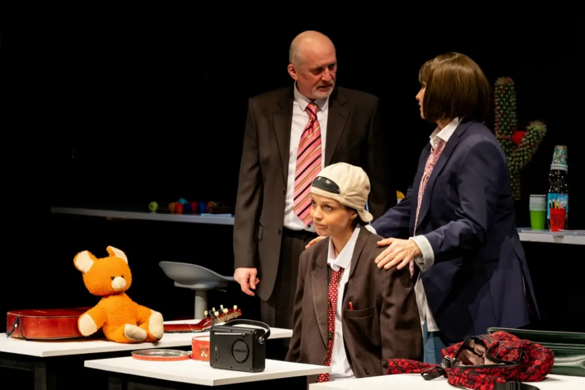 При этом зритель будто присутствует внутри семейной квартиры и в эпицентре событий – зрительские места расположены прямо на сцене, напротив возникают эпизоды семейной жизни и играет рок-группа (живая музыка от Алексея Тимофеева и Алексея Коршунова, которые не только играют на барабанах и гитаре, но тоже являются героями из класса Анатоля и Карли). Да, это сюжет про развод, но при этом живая и смешная история о том, как именно дети стремятся спасти взрослых и доказать, что они-то маму и папу любят, а их любовь – самое главное оружие.