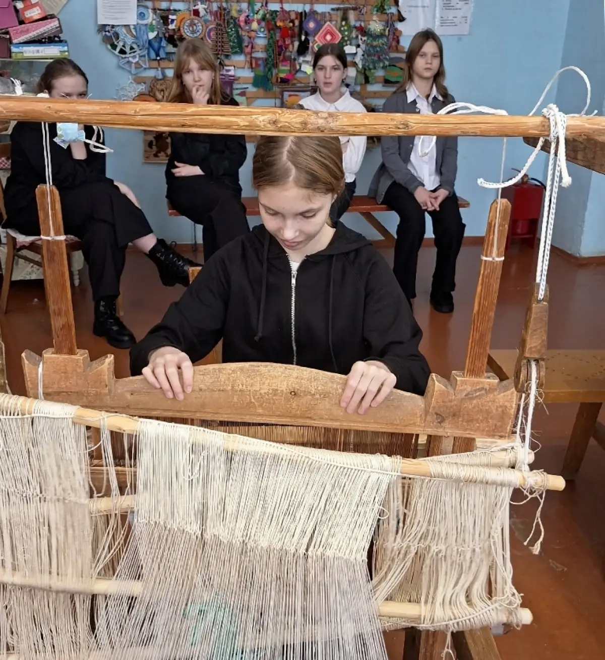Специалисты Полавского дома ремесел и фольклора организовали для пятиклассников школы посёлка Пола мастер-класс по старинной технике ткачества.