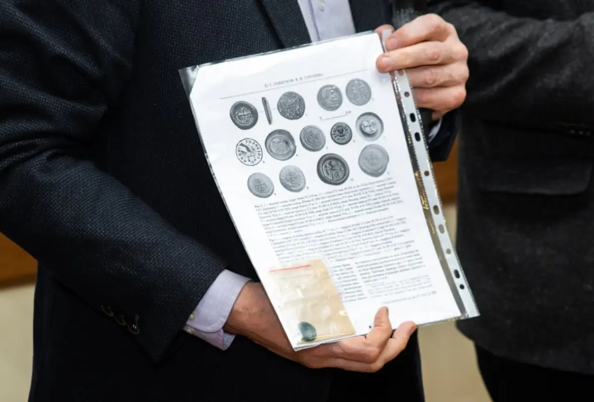 Монету обнаружили в Великом Новгороде в 2023 году во время спасательных археологических работ, связанных с реконструкцией Морского центра капитана Варухина.