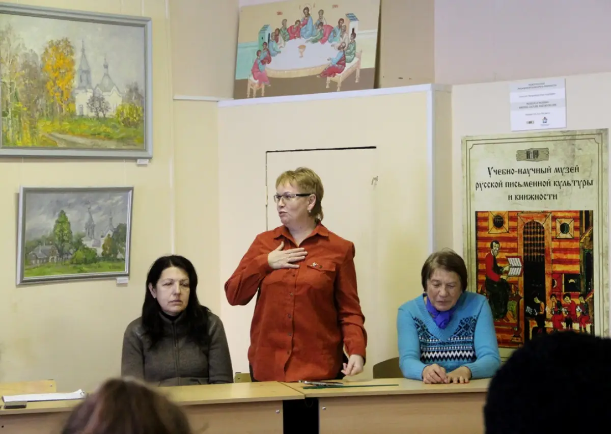 В минувшую субботу в духовно-просветительском лектории храма Сретения Господня при НовГУ состоялась презентация выставки картин новгородских художников и встреча с авторами работ.