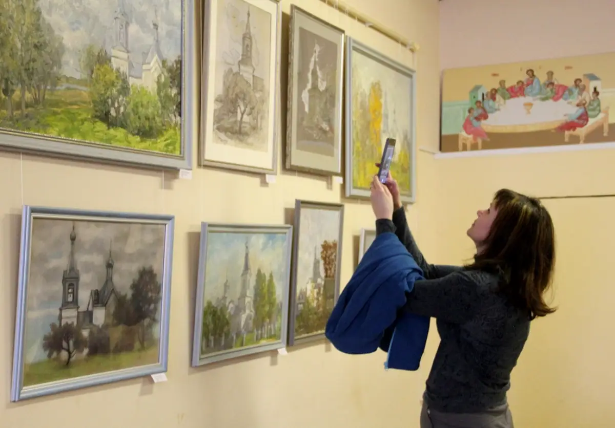 Она отметила, что на выставке представлены работы, выполненные и маслом, и акварелью, и ручкой, и пастелью. Один и тот же храм художники изображали с разных ракурсов, в разных техниках.
