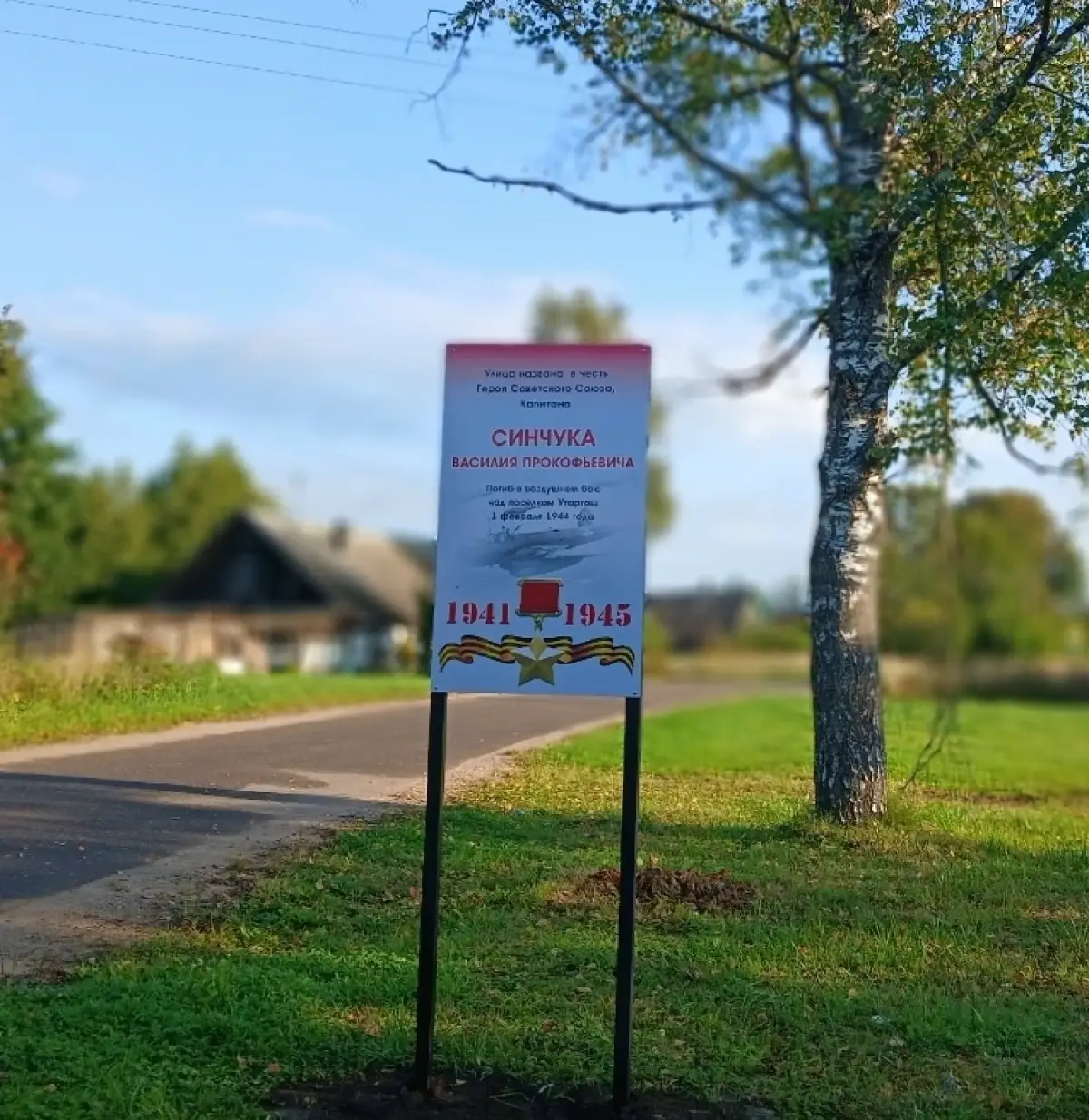 На могиле героя в посёлке установлен обелиск. Имя Василия Синчука носит одна из уторгошских улиц.