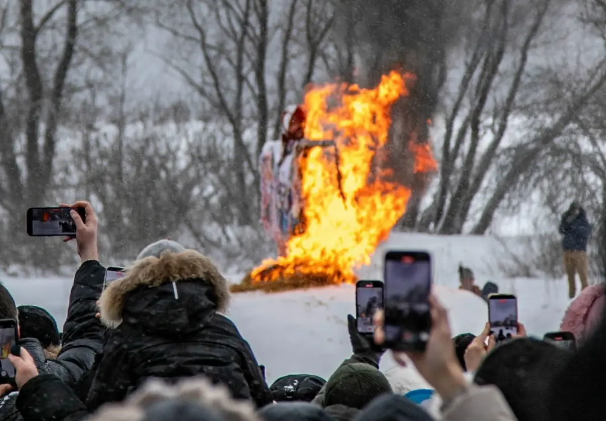 И, конечно же, ярким событием стало традиционное сожжение Масленицы.