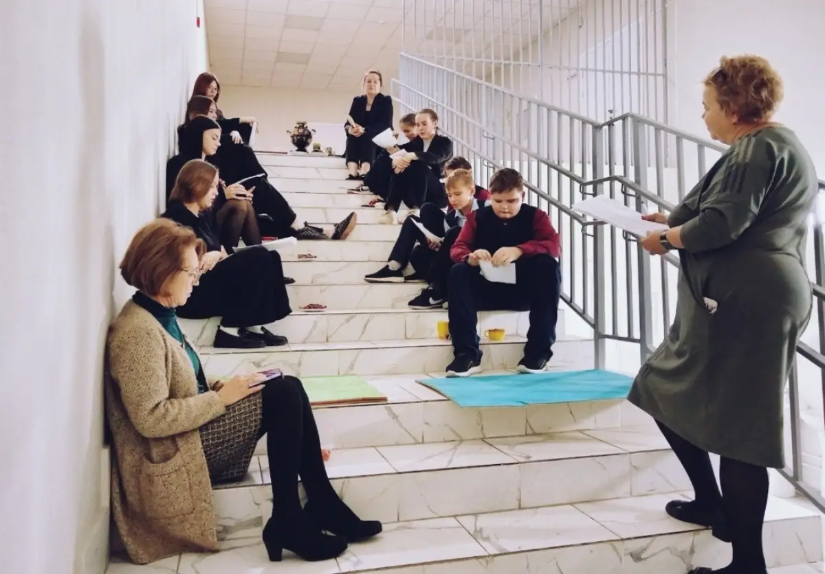 В Парфинской школе случилось нечто тёплое, душевное и очень уютное — прошли «Лестничные чтения». Это не просто урок, не просто мероприятие, а настоящий разговор по душам… на лестнице, ведущей в актовый зал.