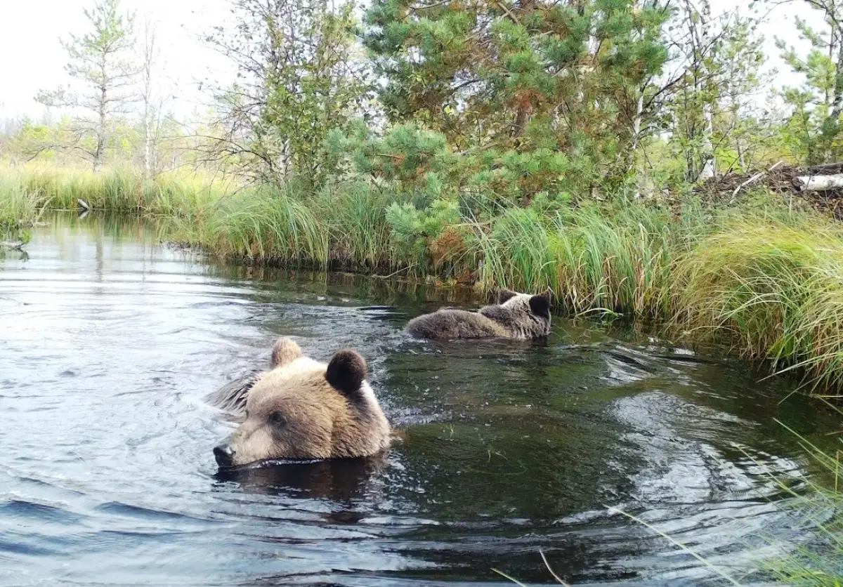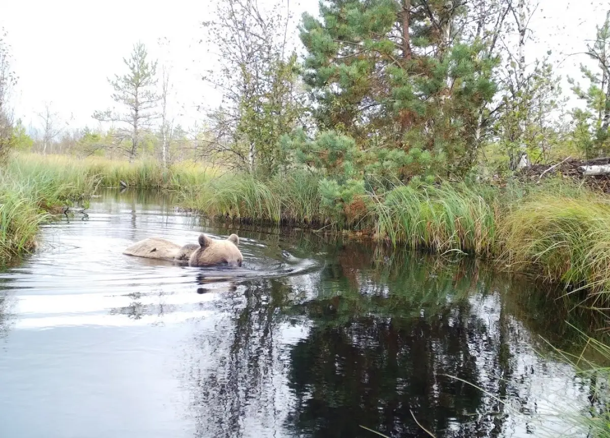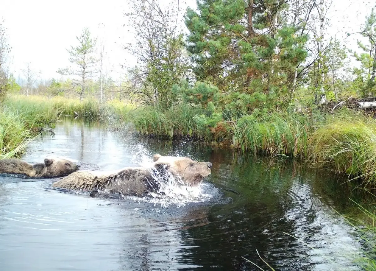 «Взрослая медведица с удовольствием чистилась в реке и окуналась в воду, пока двое медвежат плавали и играли рядом. Закончив банные процедуры, медведи неторопливо ушли дальше», – рассказала начальник отдела экологического просвещения и туризма Рдейского заповедника Вера Завьялова.