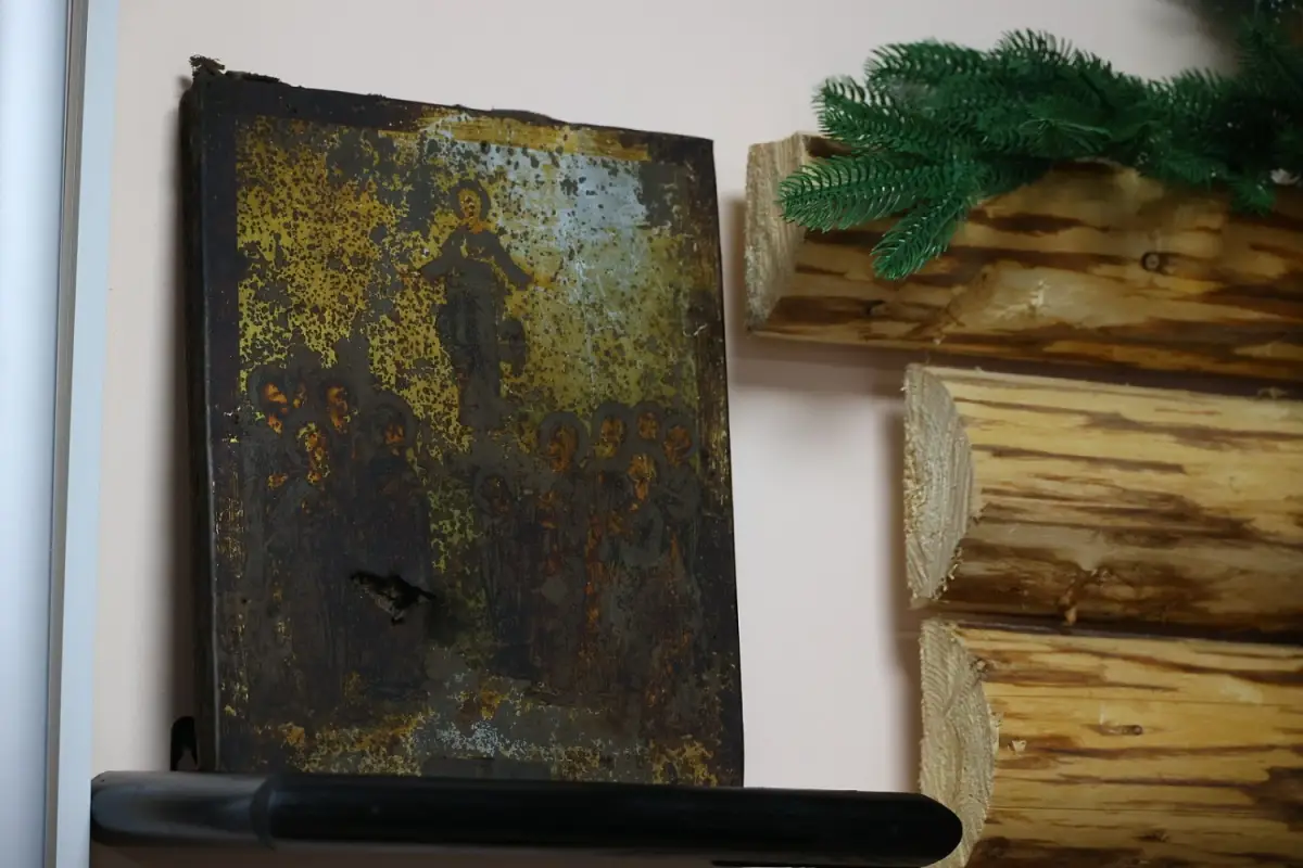 Недавно появилась новая находка — икона, пробитая осколком.