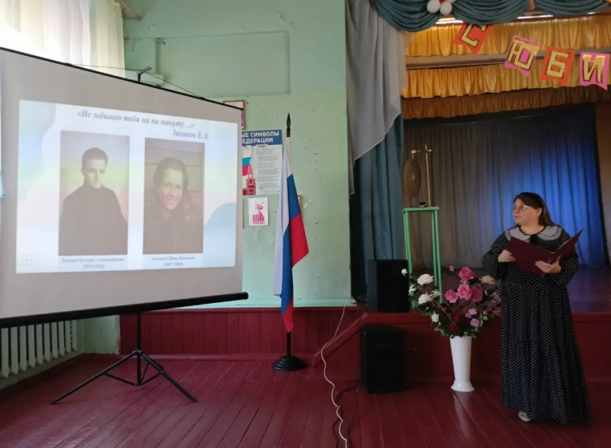 Ольга Юрьевна поделилась семейными архивами и рассказала о трёх предвоенных и военных годах в истории школы и судьбе своих родственников. Она пообещала школьникам, которые слушали её, затаив дыхание, приехать ещё и поведать о героических судьбах родных братьев директора школы Зихановых. Об одном из них есть воспоминания в книге «Пикеровщики» Леонида Дубровина, они имели военные награды.