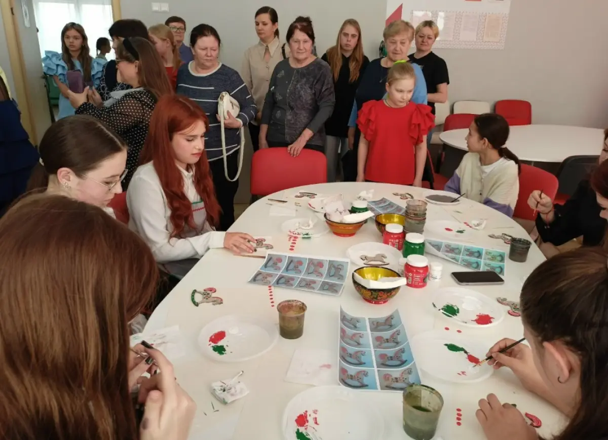 К слову, гости и участники конференции смогли увидеть эту замечательную коллекцию прялок. А также они приняли участие в мастер-классе по пальчиковой уникальной угловской росписи — расписывали деревянных лошадок.