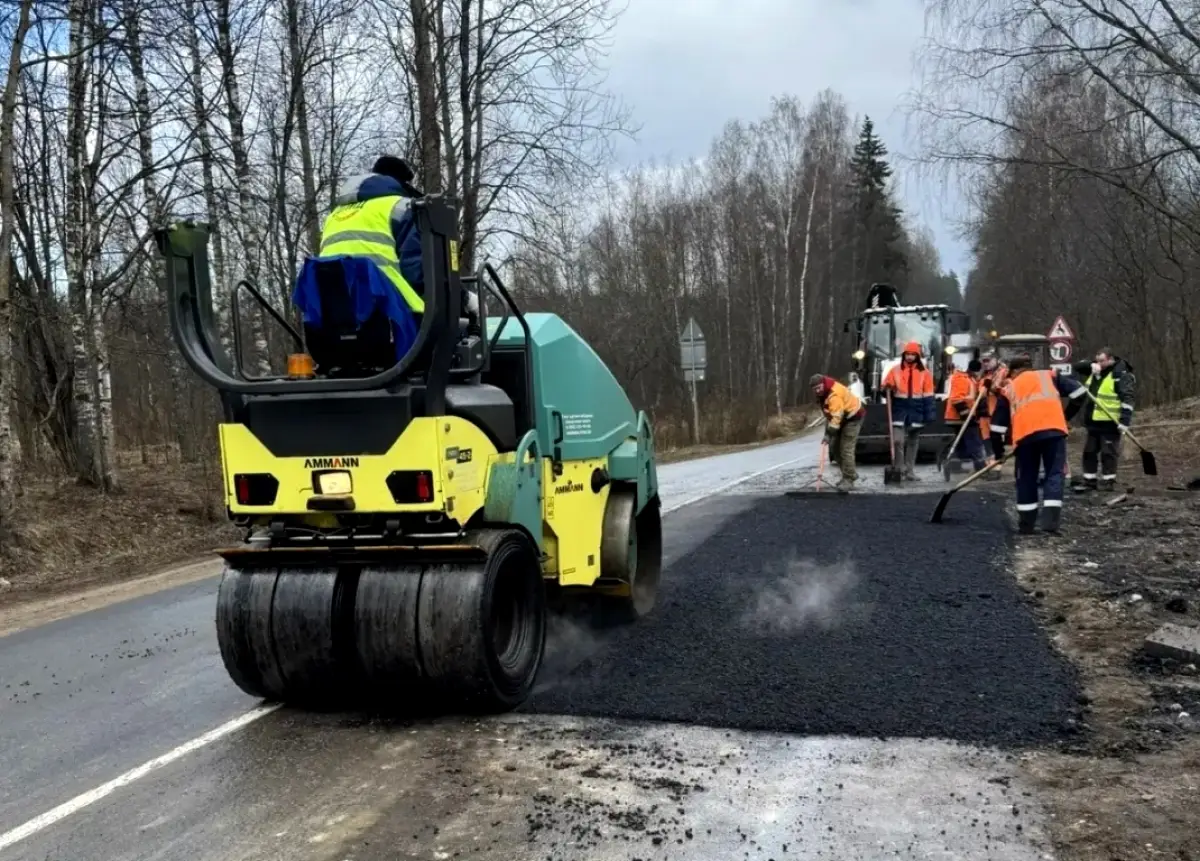 Специалисты подрядной организации приступили к работам на участках дороги, повреждённых в результате интенсивного движения тяжеловесного транспорта.